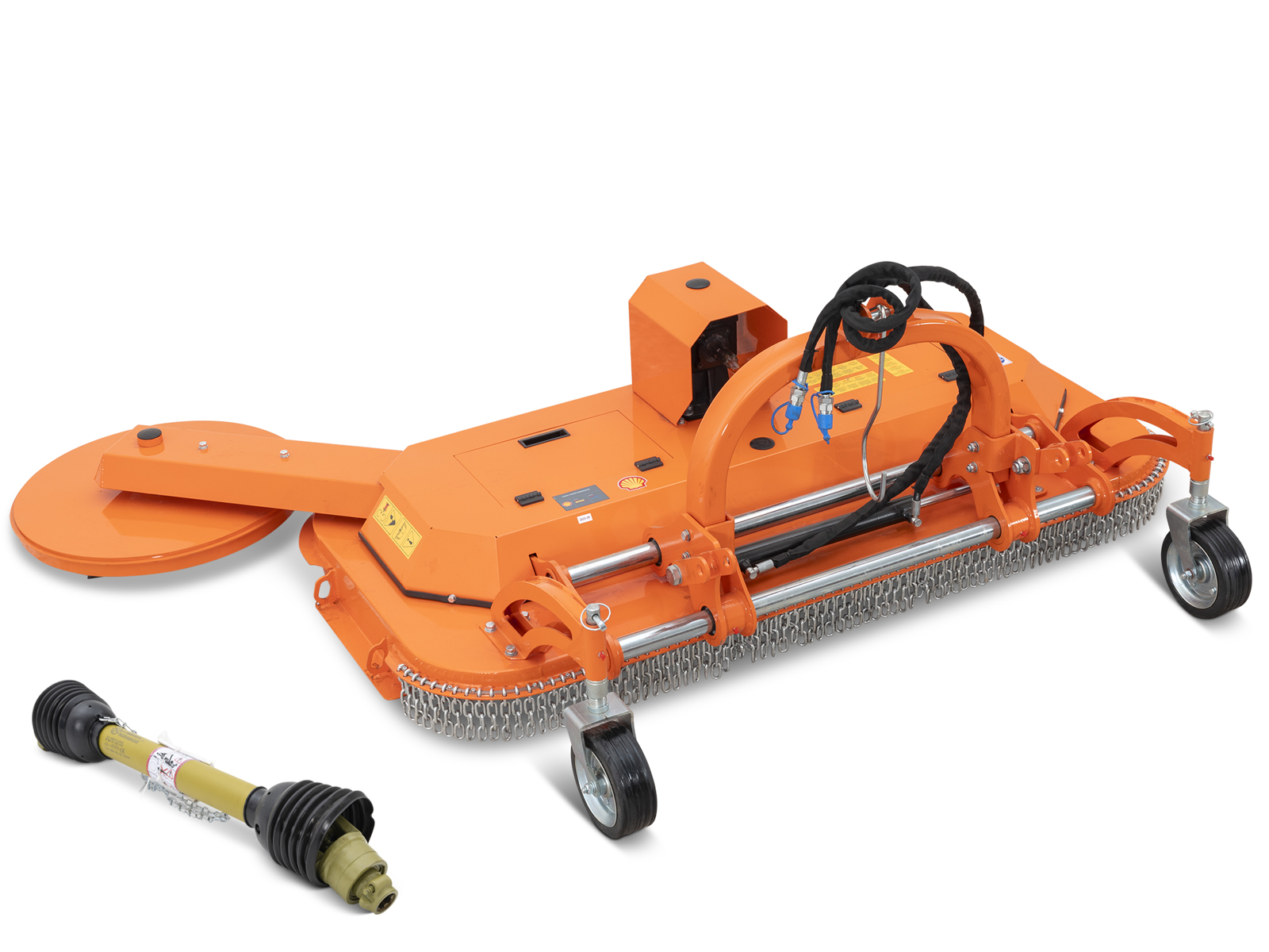 CLOSEDELEKS® DM180-INTERFILA Finishing mower for tractor, 8 blades, hydraulic side shift and 60cm inter-row disc, Cardan shaft with Free wheel integrated.