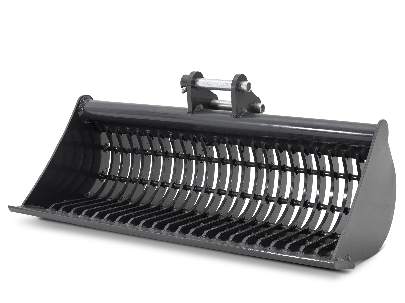 Benna spietratrice , benna per setaccio pietre, per miniescavatori DELEKS® S100 e KUBOTA S100, K008-3, U10-3, K008-5, U10-5. Utilizzata principalmente per il dragaggio di corsi d'acqua, per la selezione dei rifiuti edili durante i lavori di demolizione, nella preparazione del terreno prima della semina oppure nel giardinaggio per la preparazione del paesaggio, ecc...