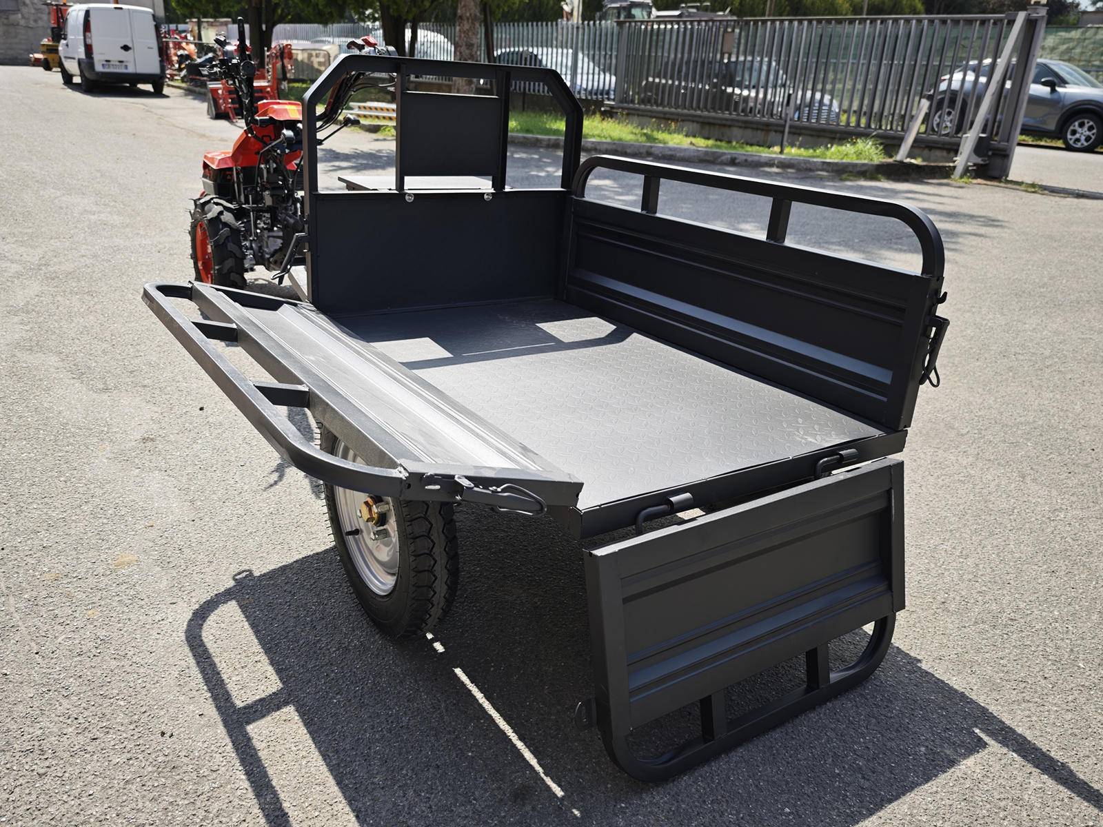 CLOSEDELEKS® Tipping Trailer for two-wheel tractor. Compatible with BCS, Ferrari, and Pasquali walking tractors.