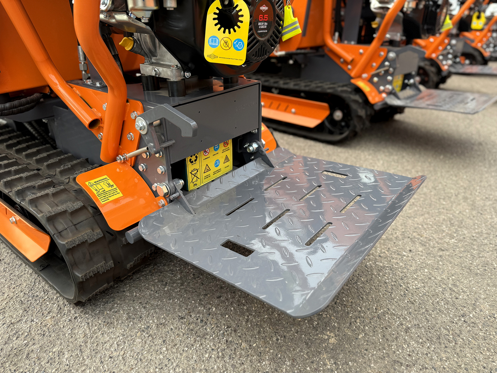 Compact tracked power barrow designed for material handling in confined spaces, construction sites, farms and professional environments.