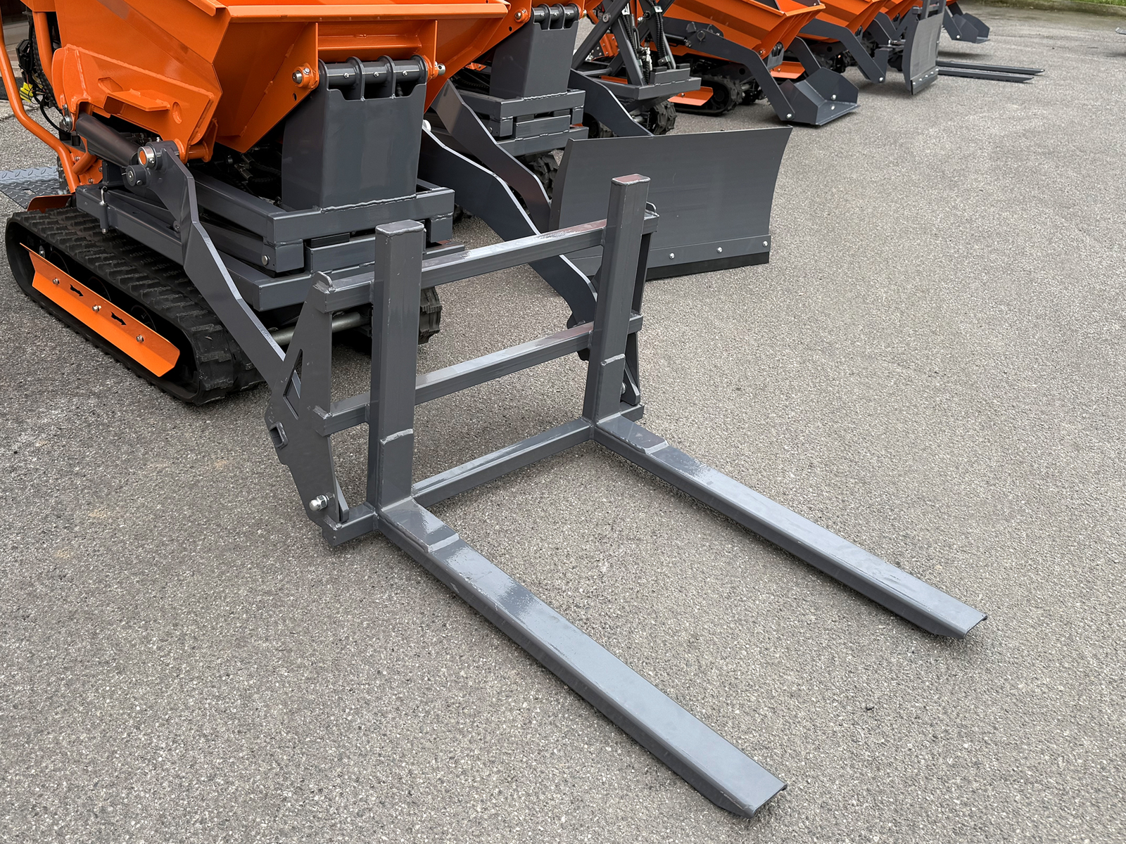 The DELEKS® forks for the V3000 and V3000H minidumpers are designed for handling pallets and compact loads up to 120 kg. The accessory replaces the standard bucket through bolted fastening, without requiring structural modifications to the machine.