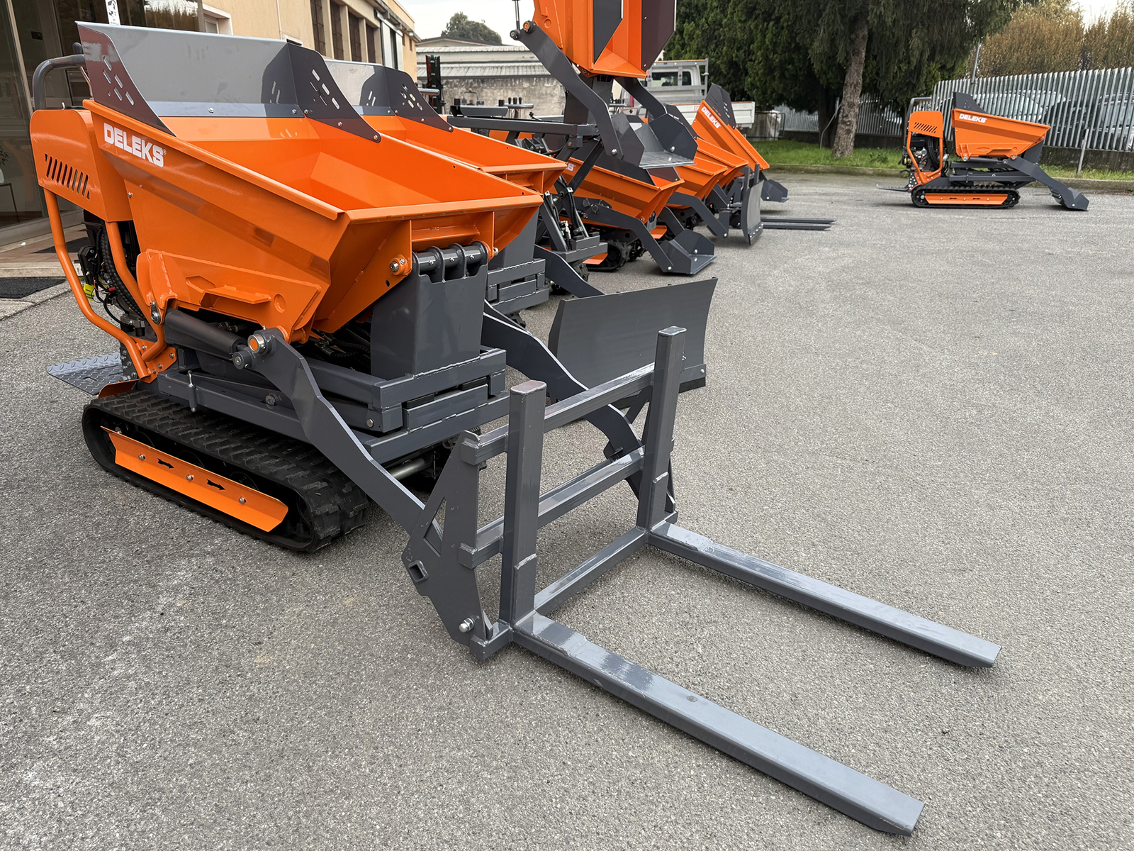 CLOSEThe DELEKS® forks for the V3000 and V3000H minidumpers are designed for handling pallets and compact loads up to 120 kg. The accessory replaces the standard bucket through bolted fastening, without requiring structural modifications to the machine.