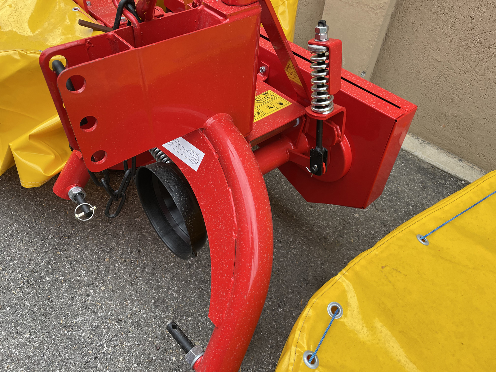 Spring locking system to allow for the mower to overcome obstacles and to keep the machine safe during transit.