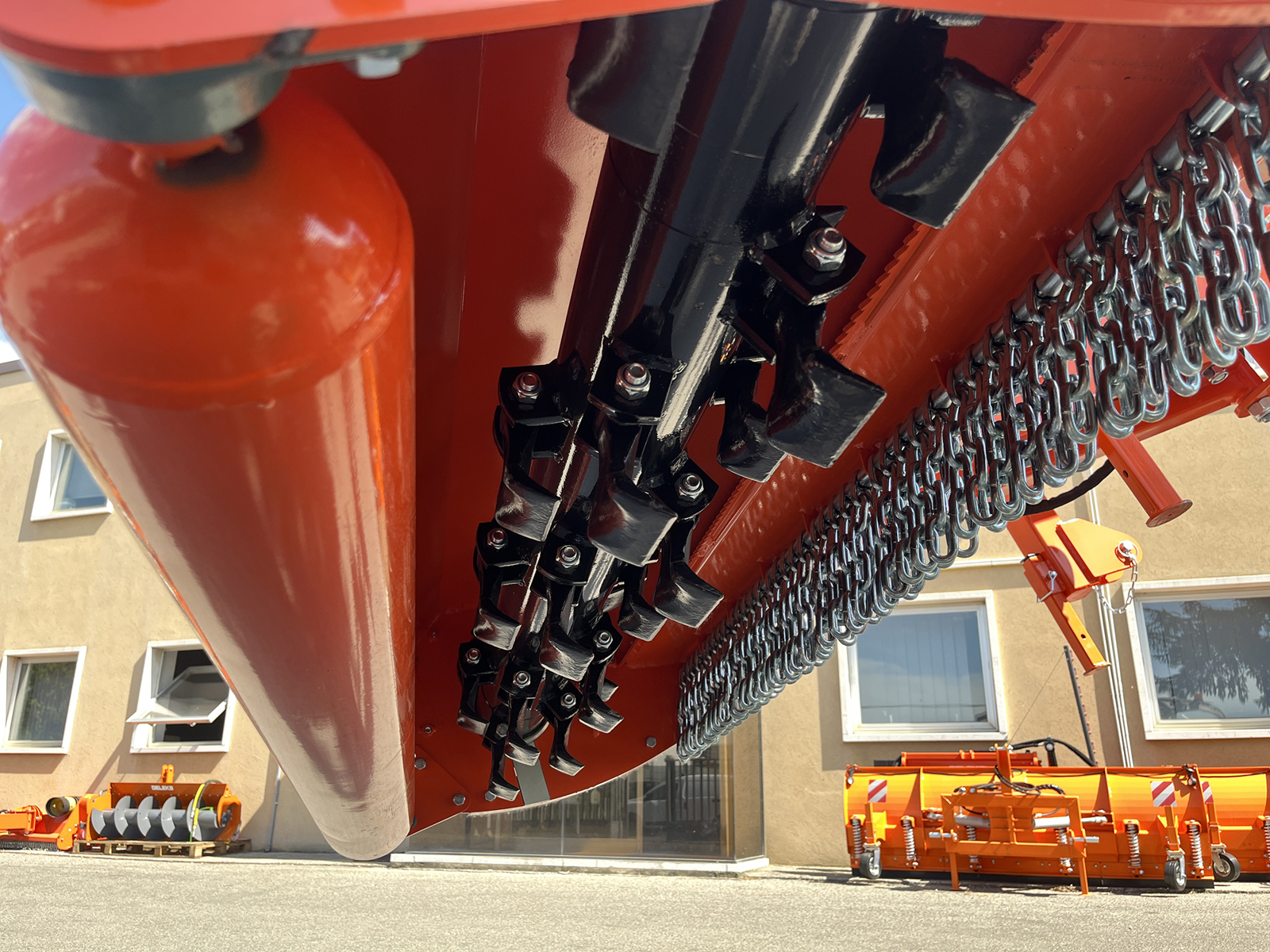 The GIRAFFA-150 multi-purpose mower is for home and professional use and is extremely popular among organic farmers to tackle rushes, brambles and hedges. The GIRAFFA cuts grass, but also shreds small twigs and branches 4-5cm thick making it ideal for docks, thistles and long, thick grass on roadsides. It can also be used for pruning and trimming bushes as it can be hydraulically angled vertically (90º) or down (65º) for riverbanks, verges and ditches. This mower is attached to the tractor using universal three point linkage and fits most 40-70hp tractors e.g Kubota, Ford, New Holland T3F, McCormick, John Deere 3, Ford, Lamborghini.