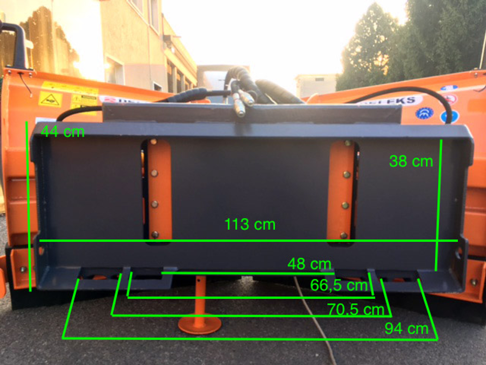 Tagliente in gomma speciale sostituibile, 2 tubi idraulici da 2,0m per il collegamento al trattore, Piedino di stazionamento, Coppia luci di ingombro. Conforme alla direttiva CE macchine. Garanzia 2 anni.
