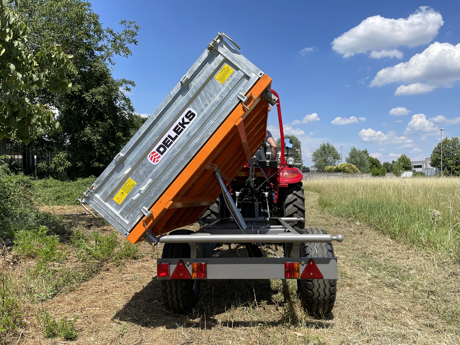 DELEKS® unique design means the trailer tips vertically, left and right (See pictures) in order to maximise usage. RM14-T3 measures 140x240cm and has a laden mass of 2.0 Ton, making it ideal for farm use.