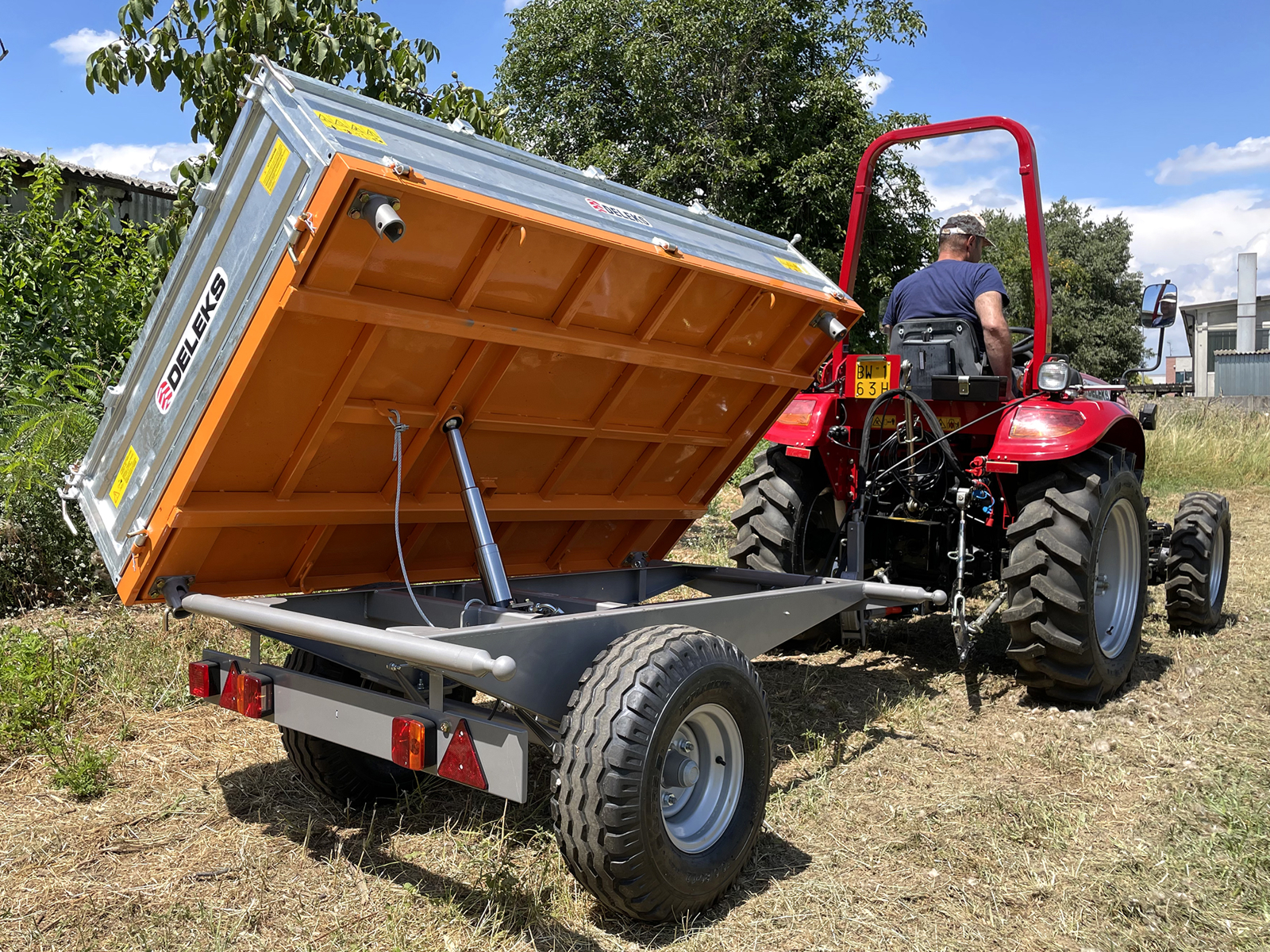 CLOSE3 way hydraulic tipping trailer 140x240cm - DELEKS® – single acting ram, for tractors.