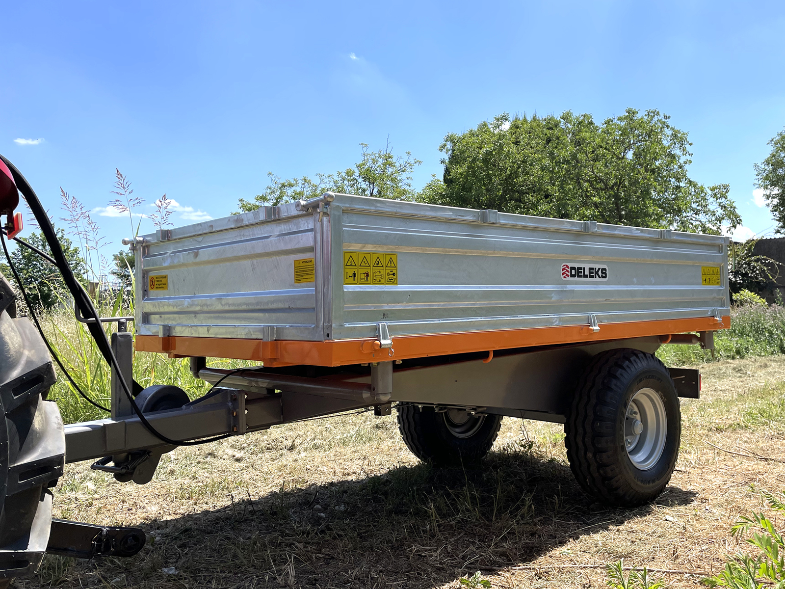 3 way hydraulic tipping trailer 140x240cm - DELEKS® – single acting ram, for tractors.