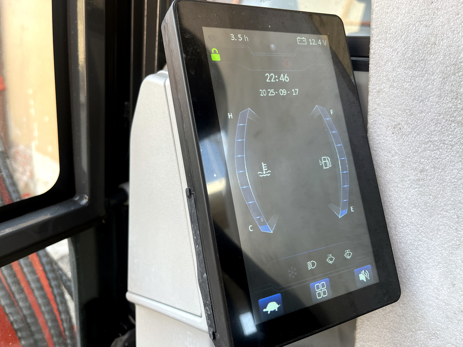 Allestimento cabina di serie: aria condizionata caldo/freddo, radio Bluetooth, schermo LCD, pilot control.