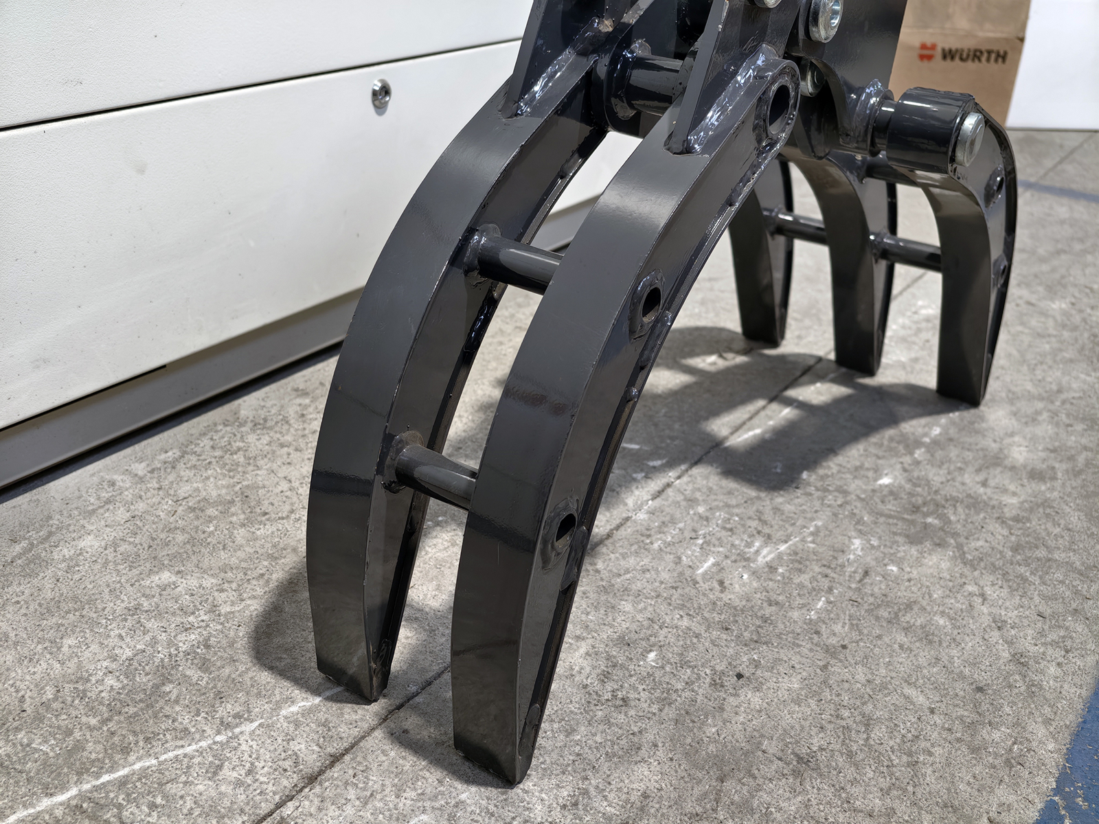 Frame and jaws made of high-strength steel, with reinforcements in high-load areas. Geometry optimised to increase gripping capacity and material stability during lifting.