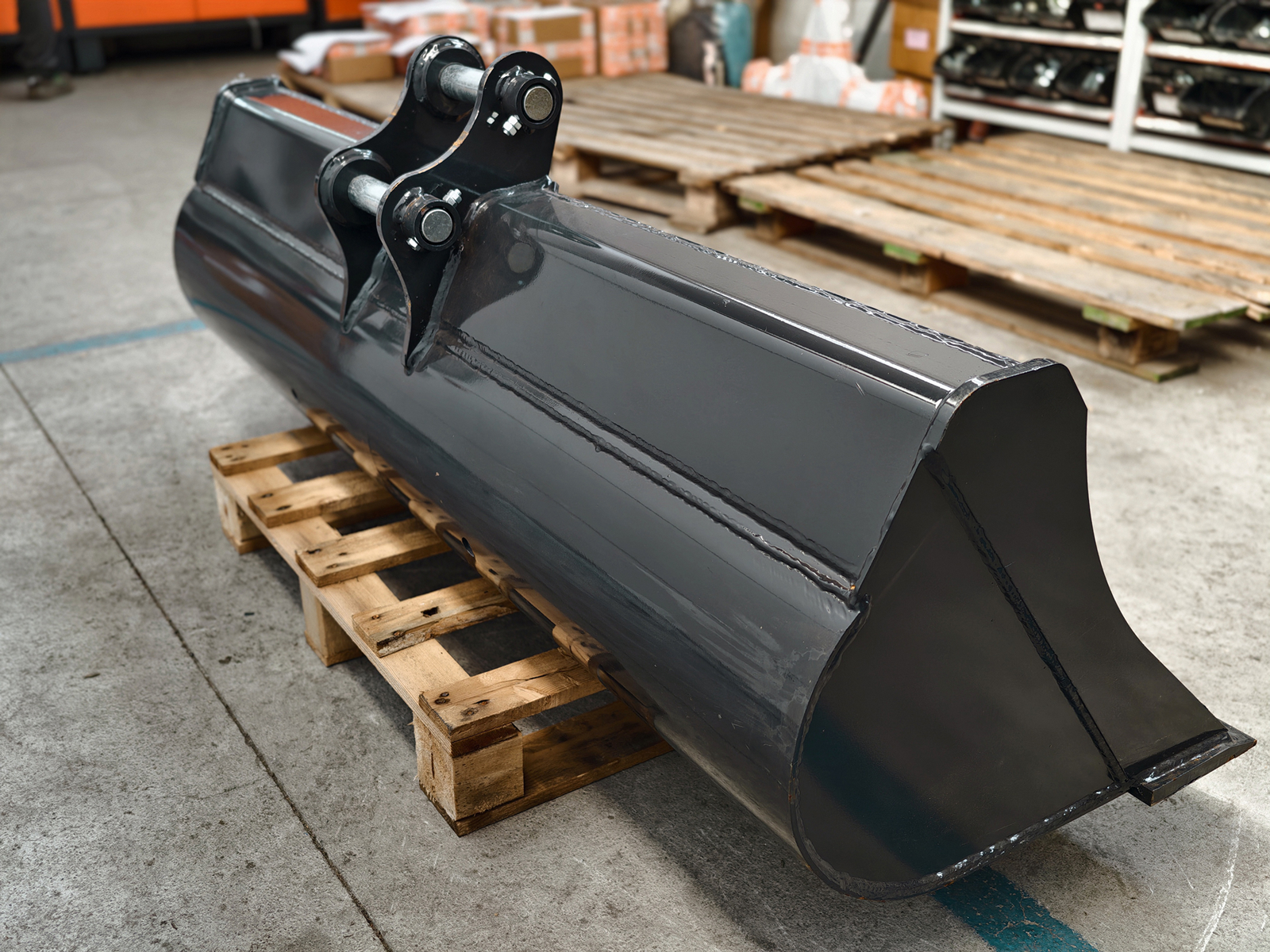 Benna larga da 150 cm DELEKS® per miniescavatori con attacco S280, fornita completa di 2 perni di collegamento.