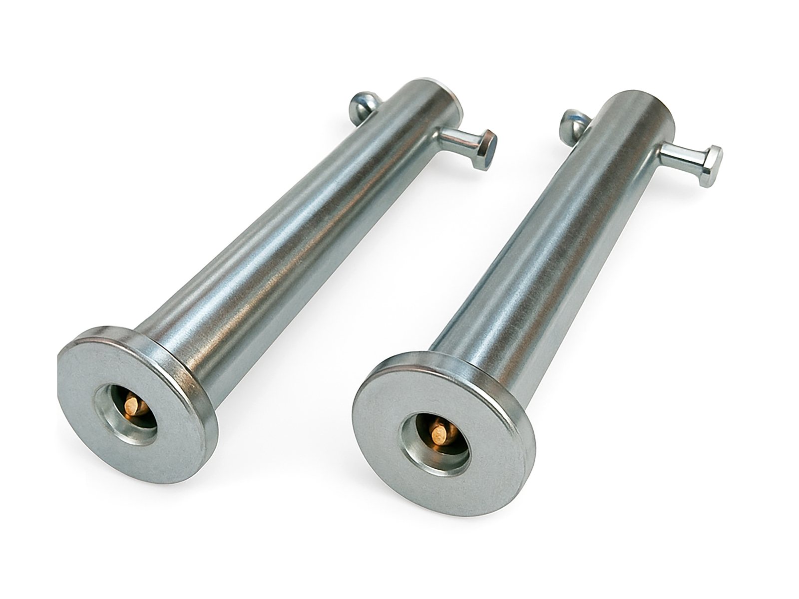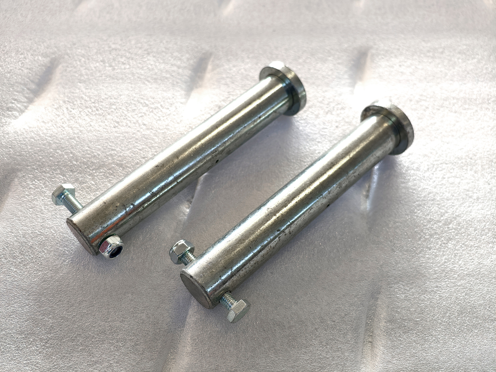 Pair of ø35 mm pins for mini excavator arm with S280 hitch, designed for the kinematic linkage of attachments such as buckets, rippers, rakes, augers and other compatible tools. The pins are manufactured through precision machining from high-strength steel, with ground surfaces to ensure concentricity, uniform finish and reduced friction at rotation points.