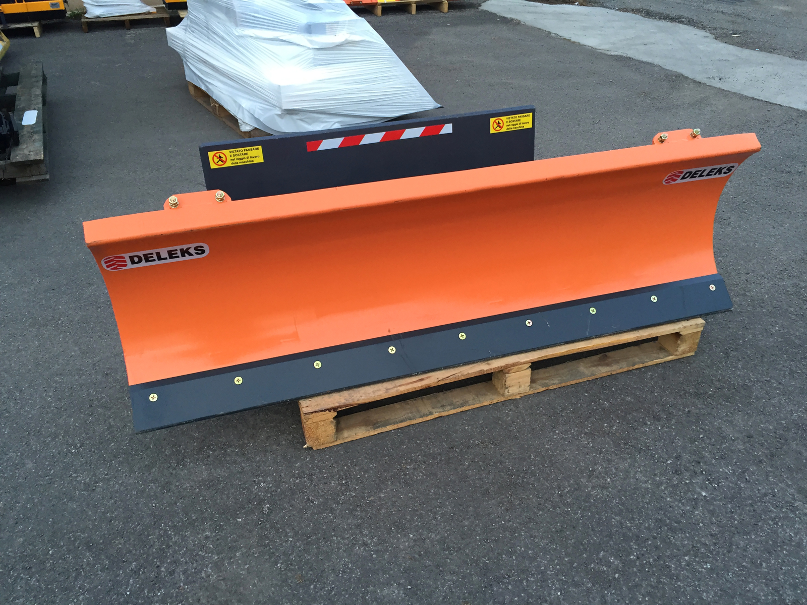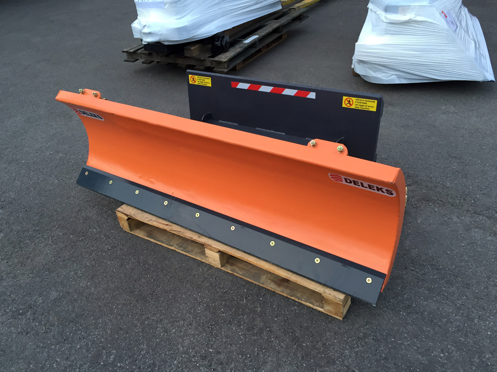 DELEKS® LNS-210-M lightweight, agile snowplow for skid steer loaders up to 1.8 ton. Compatible with all common brands e.g Bobcat, JCB, Caterpillar, Case, etc. Conforms to the EC Machinery Directive. 2 years guarantee.