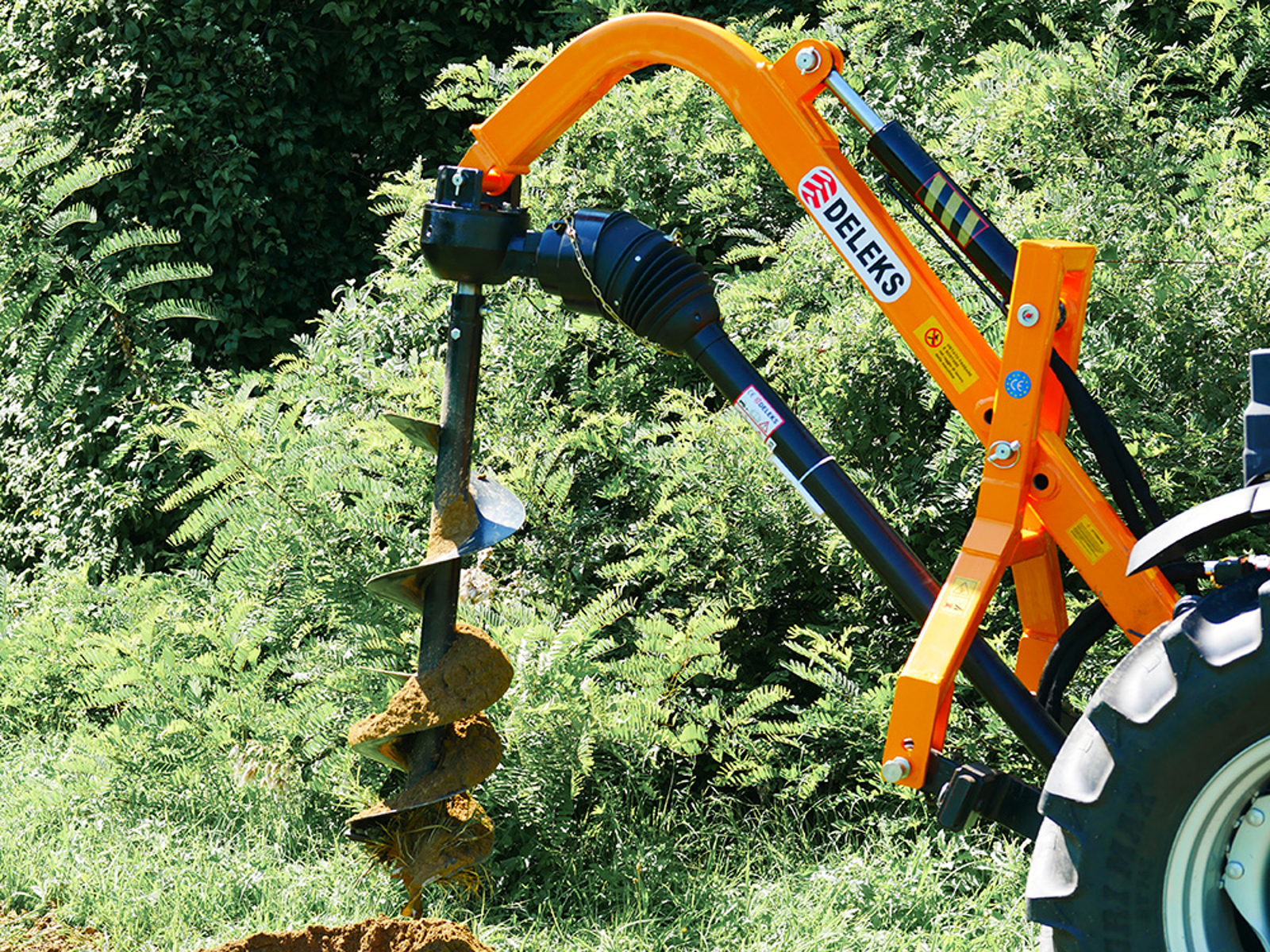 Heavy Post Hole Digger for tractors -DELEKS® - with PTO shaft and Hydraulic arm cylinder with pipes.