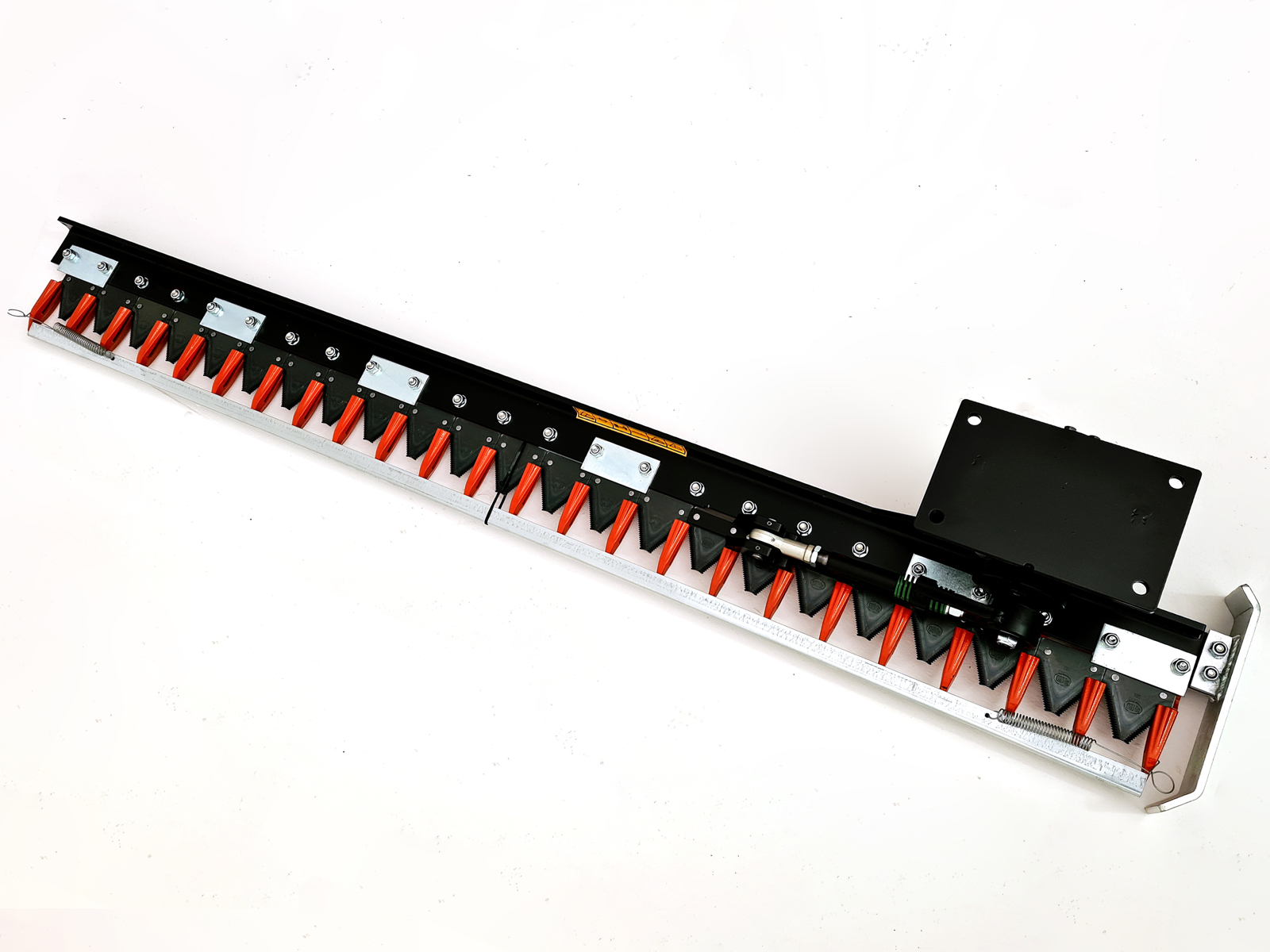 Hydraulic cutter bar DELEKS® HR is ideal for trimming hedges and branches up to about 2.5 cm in diameter. The set-up includes the hydraulic motor and the mounting plate with 4 mounting holes (measures shown in the images).