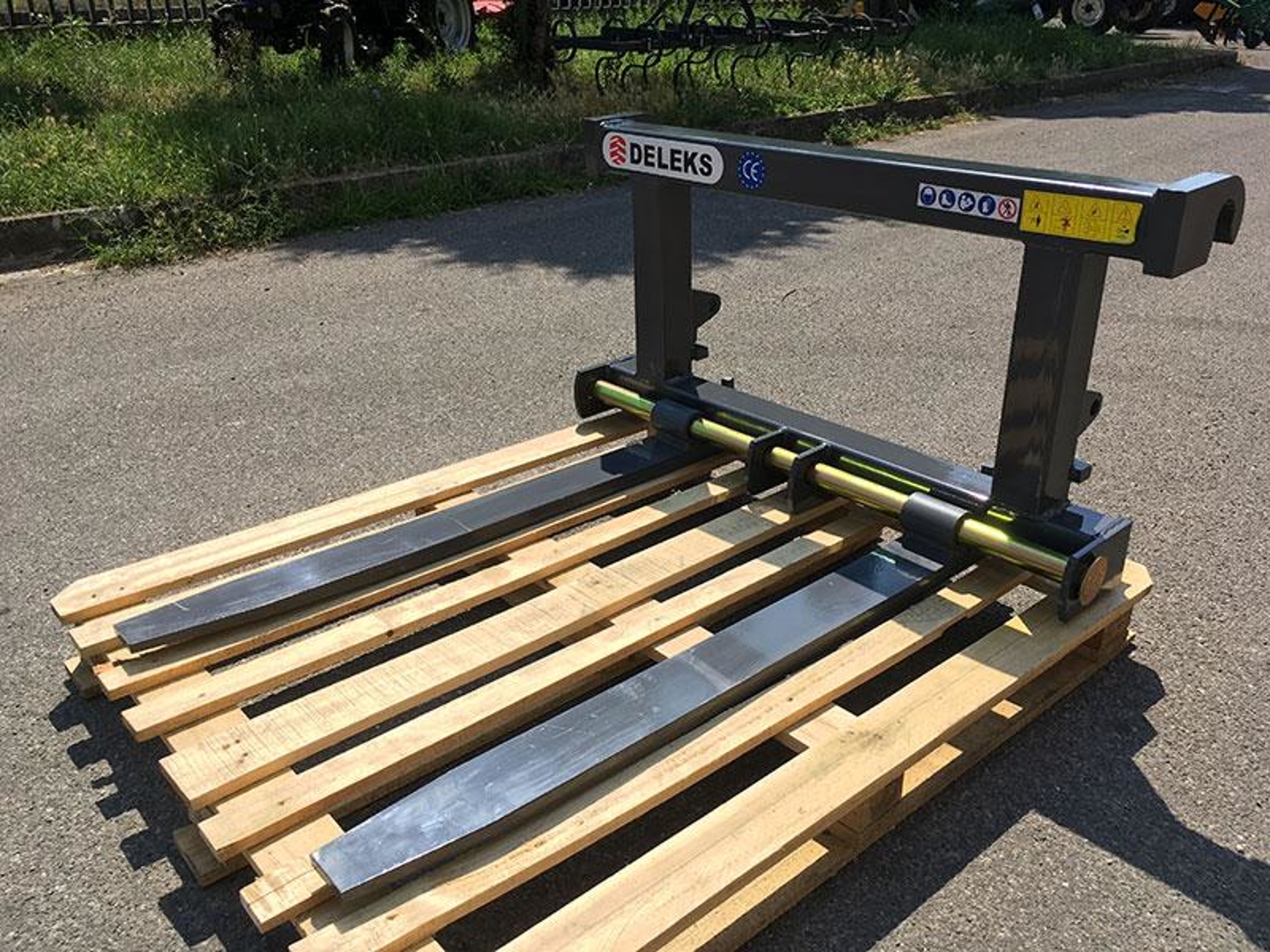 The D-700-E Pallet Forks with a loading capacity of 700kg, making it ideal for use on farms and ranches, construction sites, nurseries, campuses, theme parks, and for warehouse work. Universal forks for pallet lifting. EC Conformity, 2 Year warranty.