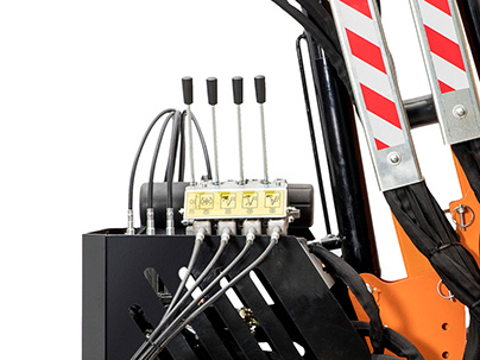 Efficient remote control with 4 levers and flexible hoses.