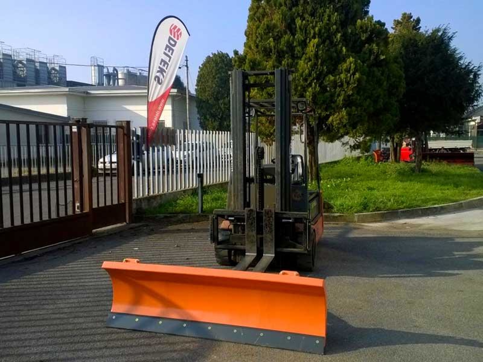 DELEKS® lightweight, agile snowplow for forklifts. Compatible with all common brands e.g Bobcat, JCB, Caterpillar, etc. Conforms to the EC Machinery Directive. 2 years guarantee.