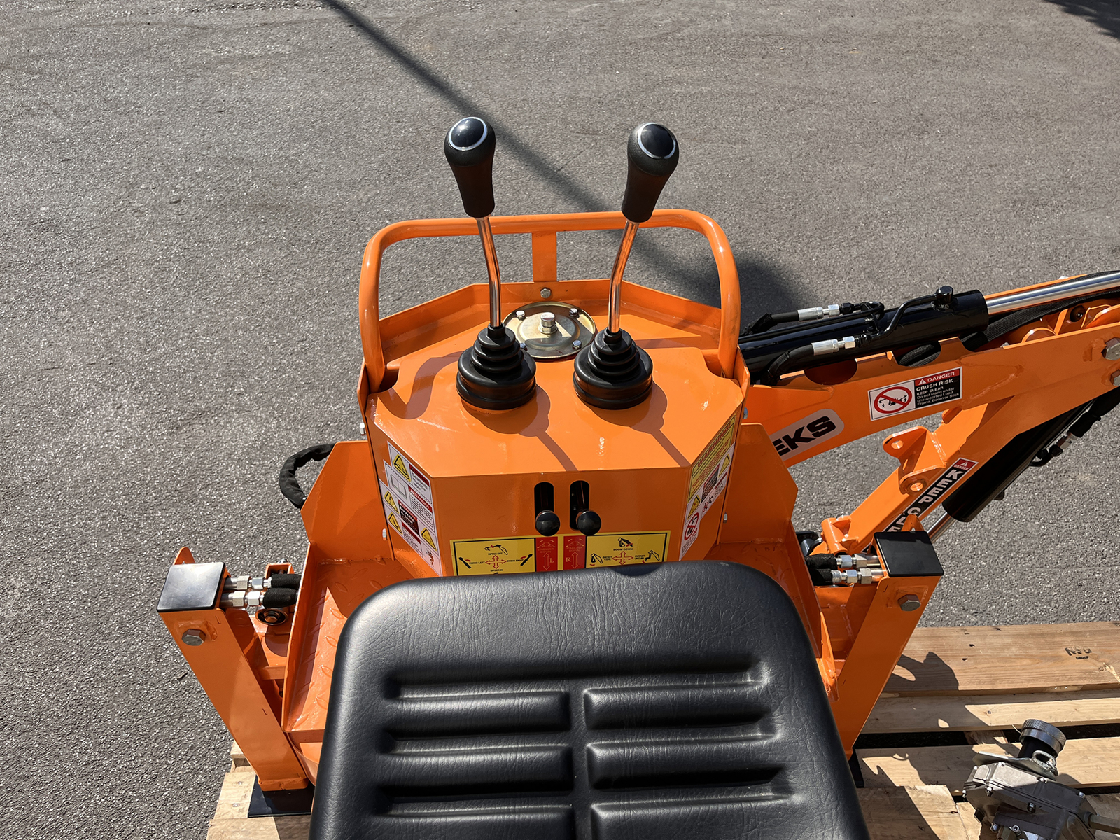 CLOSEMini backhoe for universal compact tractors - DELEKS® DRS-1000T - 358 kg - Side shift frame with manual locking - Oil system.