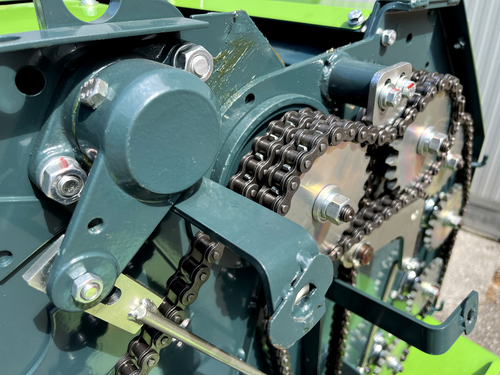 Highly durable steel rollers are adopted for the compression system. Power fluctuation is less than hay square baler, stable and noiseless operation can be expected.