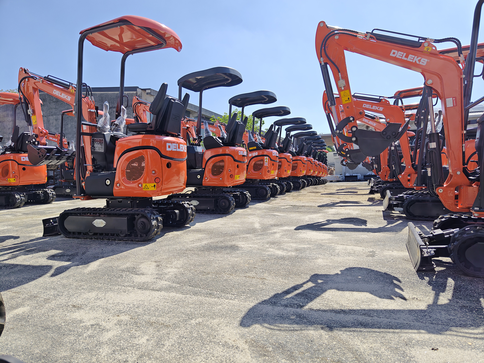 Mini excavator DELEKS® with Kubota D722 engine, water cooling, Side control levers, extendable undercarriage, swing boom.