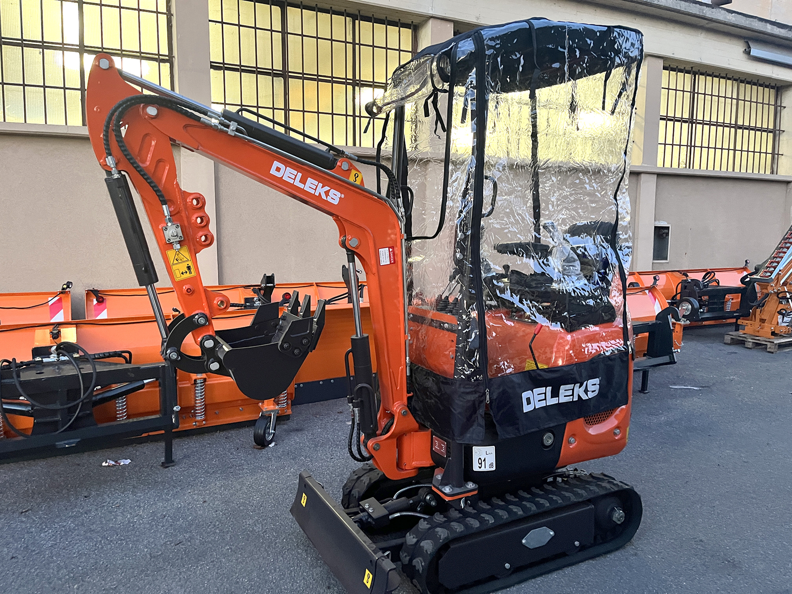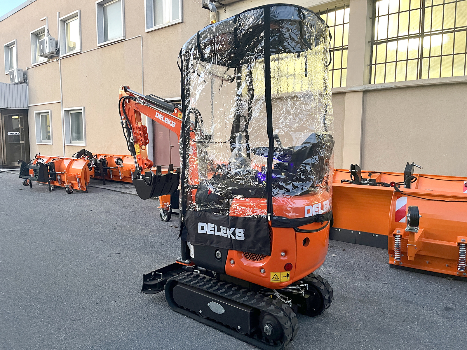 CLOSEThe DELEKS® COVER-M100 Protective Cover (Rain and Wind) is specifically designed for DELEKS® M90, M100 and M100se mini excavator models. Regardless of weather conditions, this cover is the perfect solution to ensure continuity of your work, even in heavy rain or wind. With the cover installed, bad weather will no longer cause you to lose time!