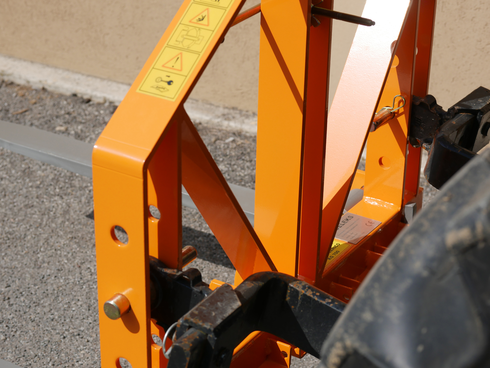 D-700 Forchino per pallet, per il carico e la movimentazione di bancali. Carico consentito 700kg circa. Progettato con una struttura solida per sfruttare al massimo la potenzialità di trattori medie dimensioni, isodiametrici, cingolati o frutteto, come New Holland TK4000, T3030, T4F, John Deere serie 4-5, Landini Mistral, Deutz-Fahr, Goldoni Euro, Star, Energy, Lamborghini Ego 45-55, McCormick, Same Delfino, Solaris o Frutteto, FIAT, ecc. Attacco a 3 punti universale Cat. 1-2. Conformità CE. Garanzia 2 anni.