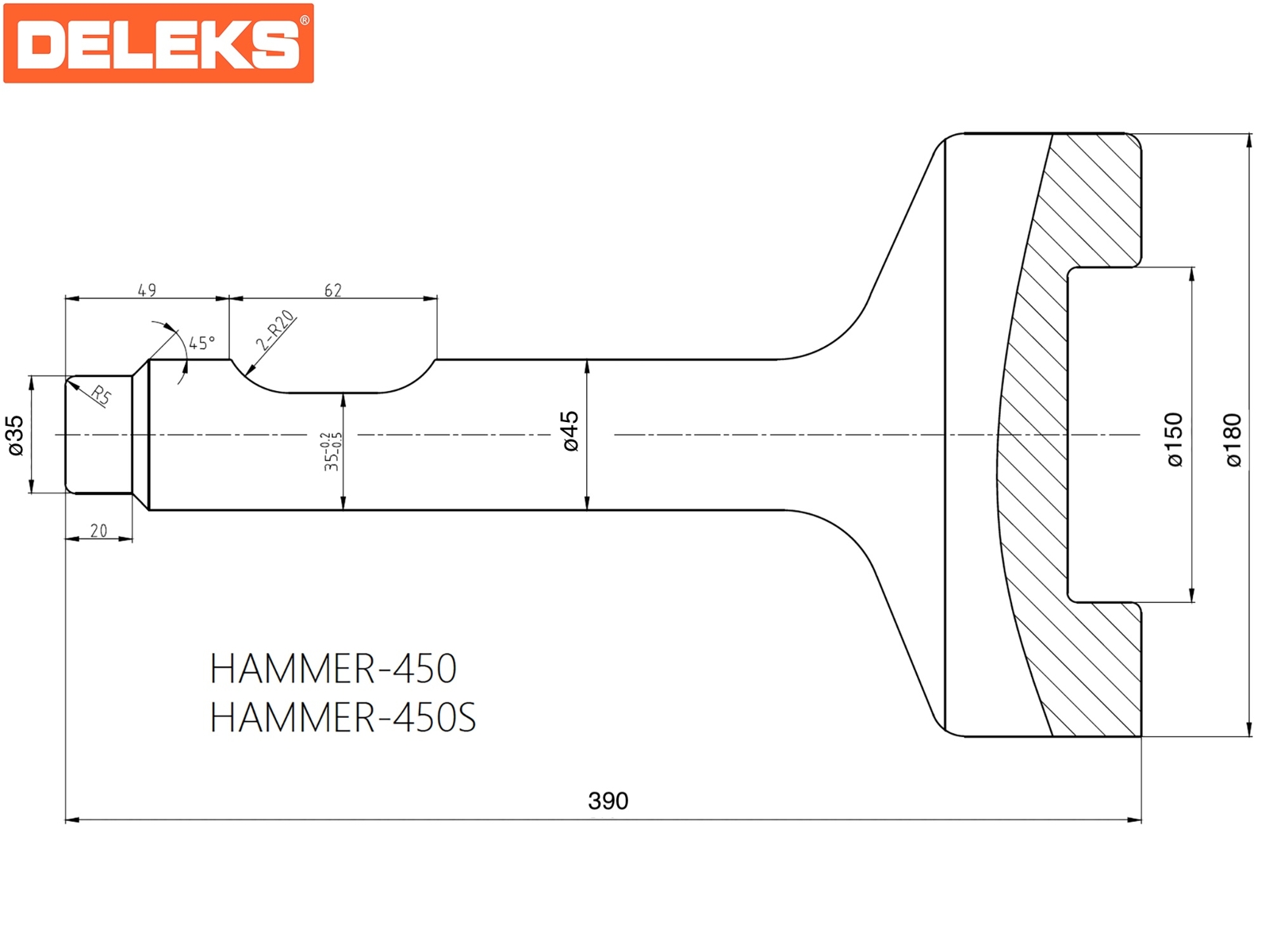 DELEKS® Punta Battipalo per impianto martello. Diametro stelo 45mm.