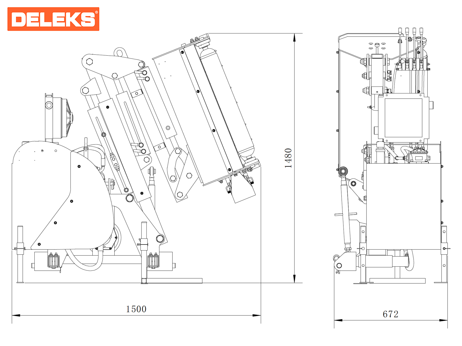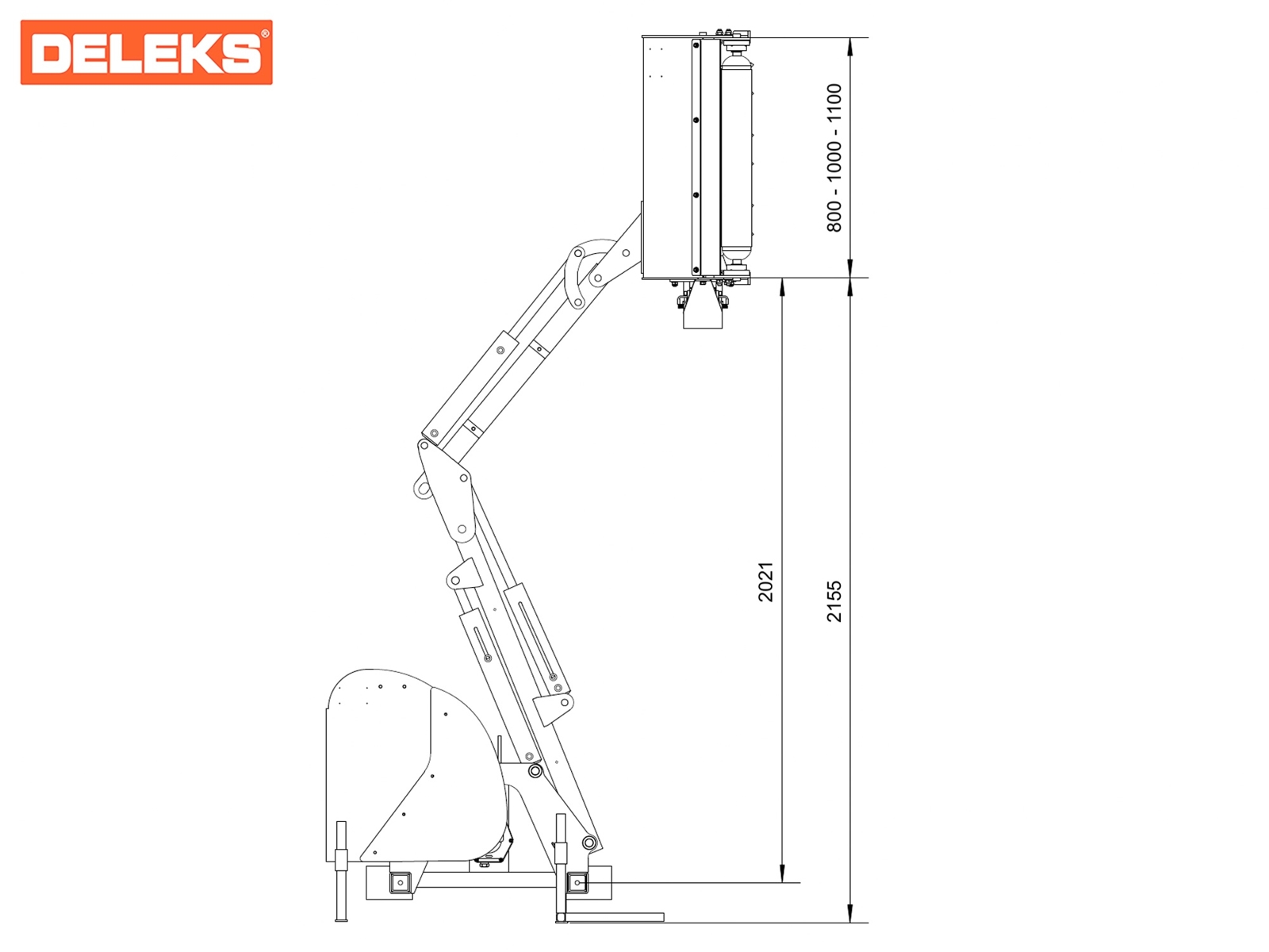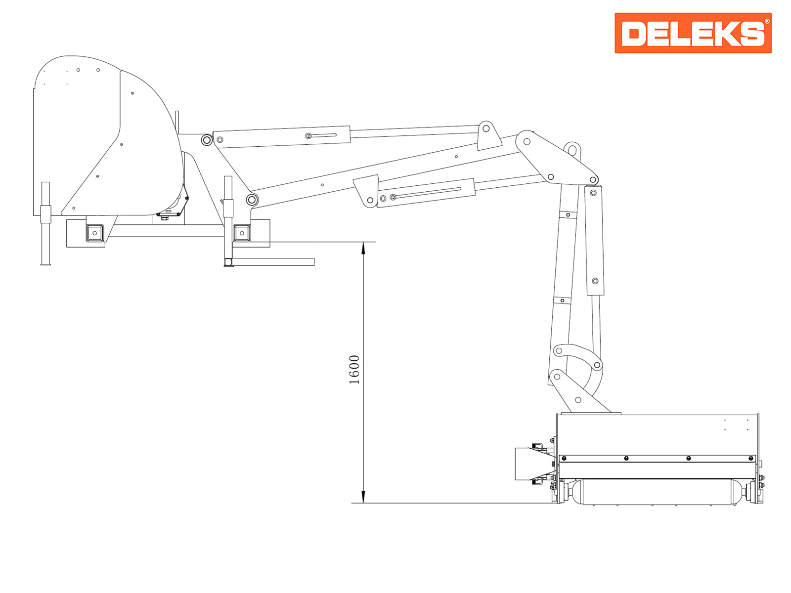 Decespugliatore idraulico portato a due bracci - DELEKS® MERLO, può montare una testata trinciante da 80-100-110cm di taglio, oppure una barra tosasiepi da 130-160 o 180cm - Joystick - Pompa pto inclusa.