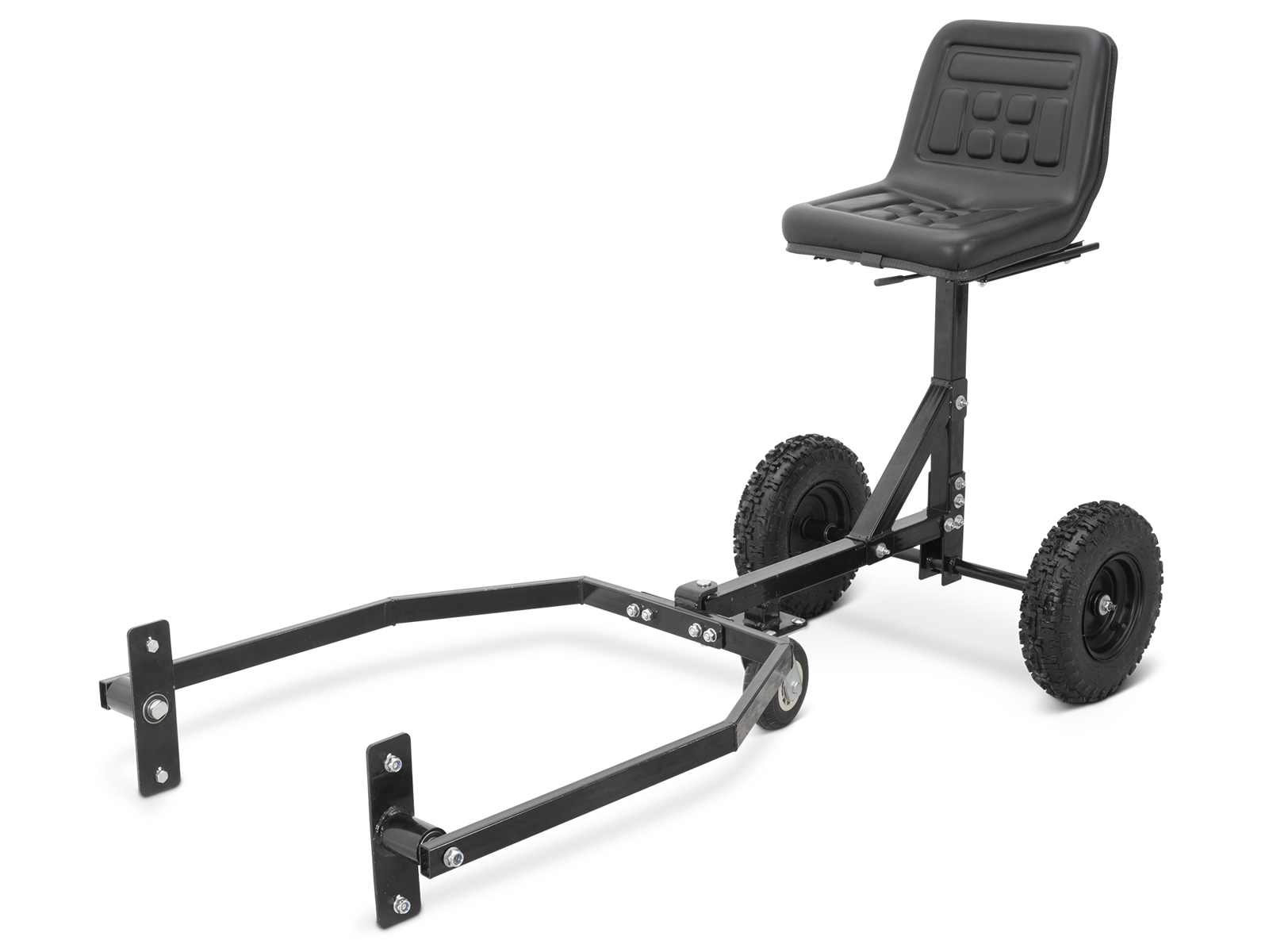 DELEKS® Carrello Sulky per motocoltivatore. Telaio con 2 ruote e sedile, da utilizzare con il motocoltivatore in assetto frontale con trinciatrice o spazzaneve.