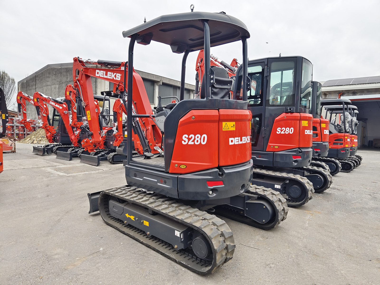 CHIUDIMiniescavatore DELEKS® S280 – Motore Yanmar 3TNV80F a 3 cilindri raffreddato a liquido – Doppia velocità - soddisfa gli standard sulle emissioni Euro 5 / Stage V e ha una cilindrata di 1.267 litri. Con una potenza di 20 CV (14,6 kW) a 2400 giri/min, il motore fornisce la potenza necessaria per prestazioni di lavoro efficienti.
