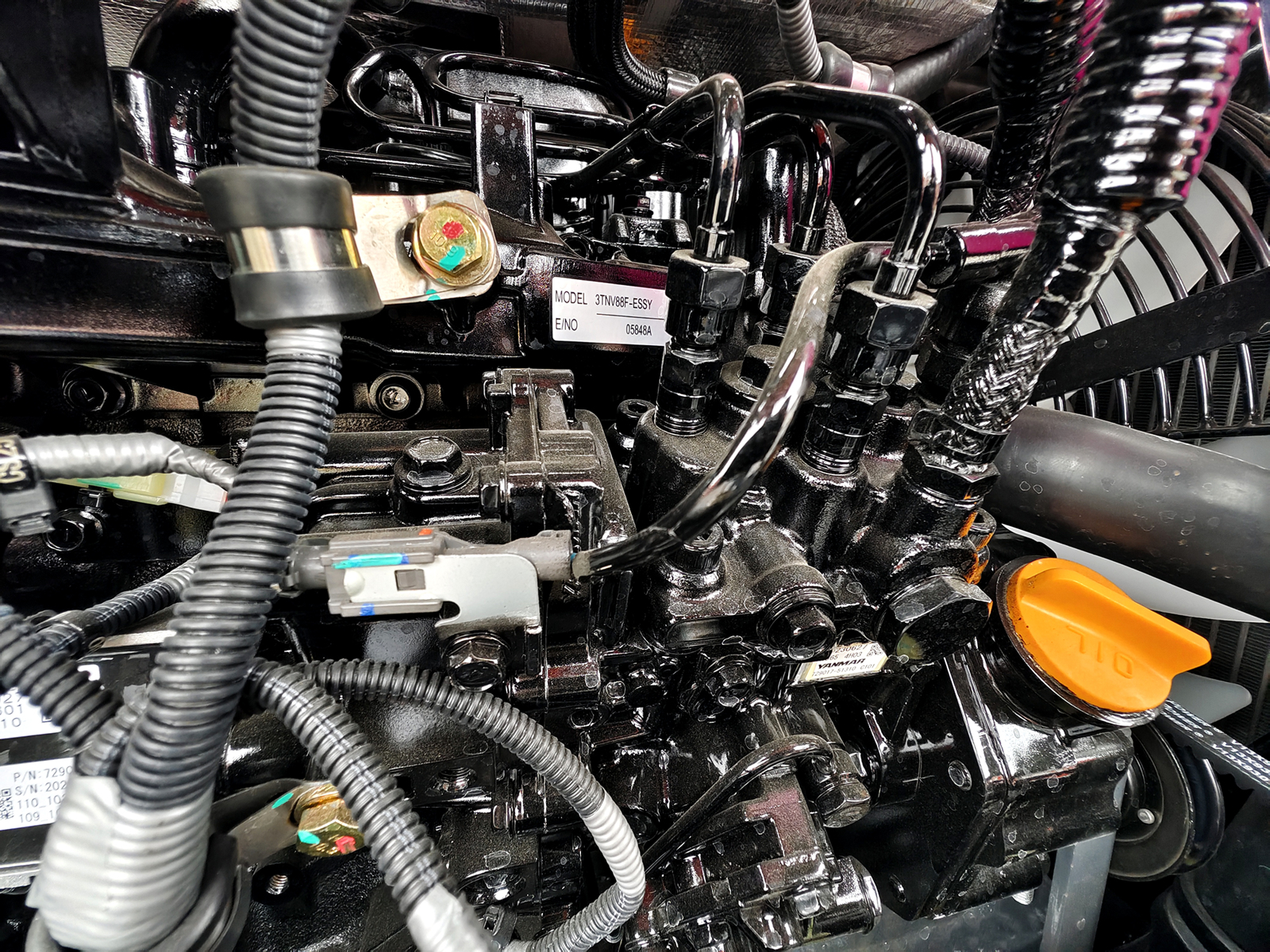 - Il motore diesel 3TNV88F eroga 18,2 kW a 2400 giri/min, combinando potenza costante, bassi consumi ed emissioni ridotte, nel pieno rispetto degli standard ambientali europei. Il sistema di gestione elettronica del motore Yanmar ottimizza automaticamente il regime di giri: quando le leve di comando restano in posizione neutra per più di 4 secondi, il motore si porta al minimo, riducendo consumi e rumorosità, e migliorando l’efficienza complessiva della macchina.