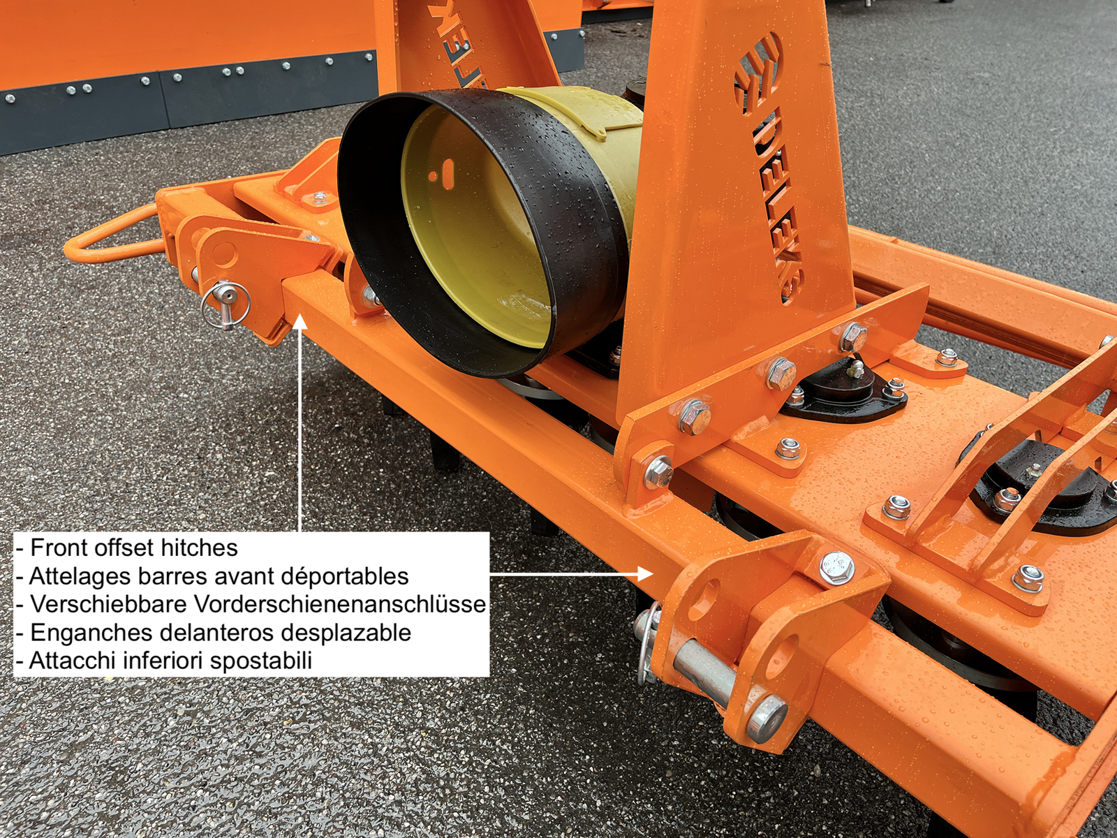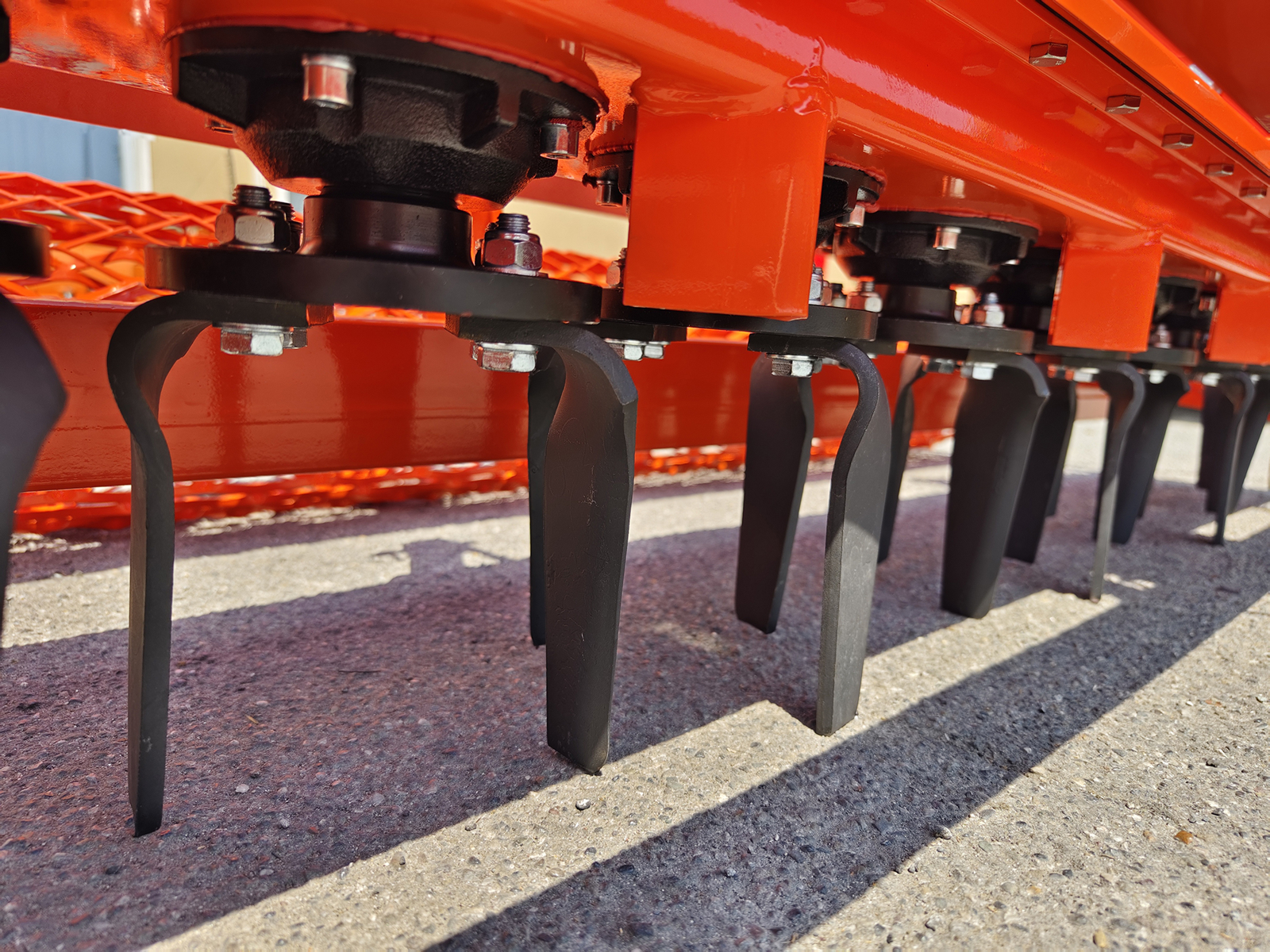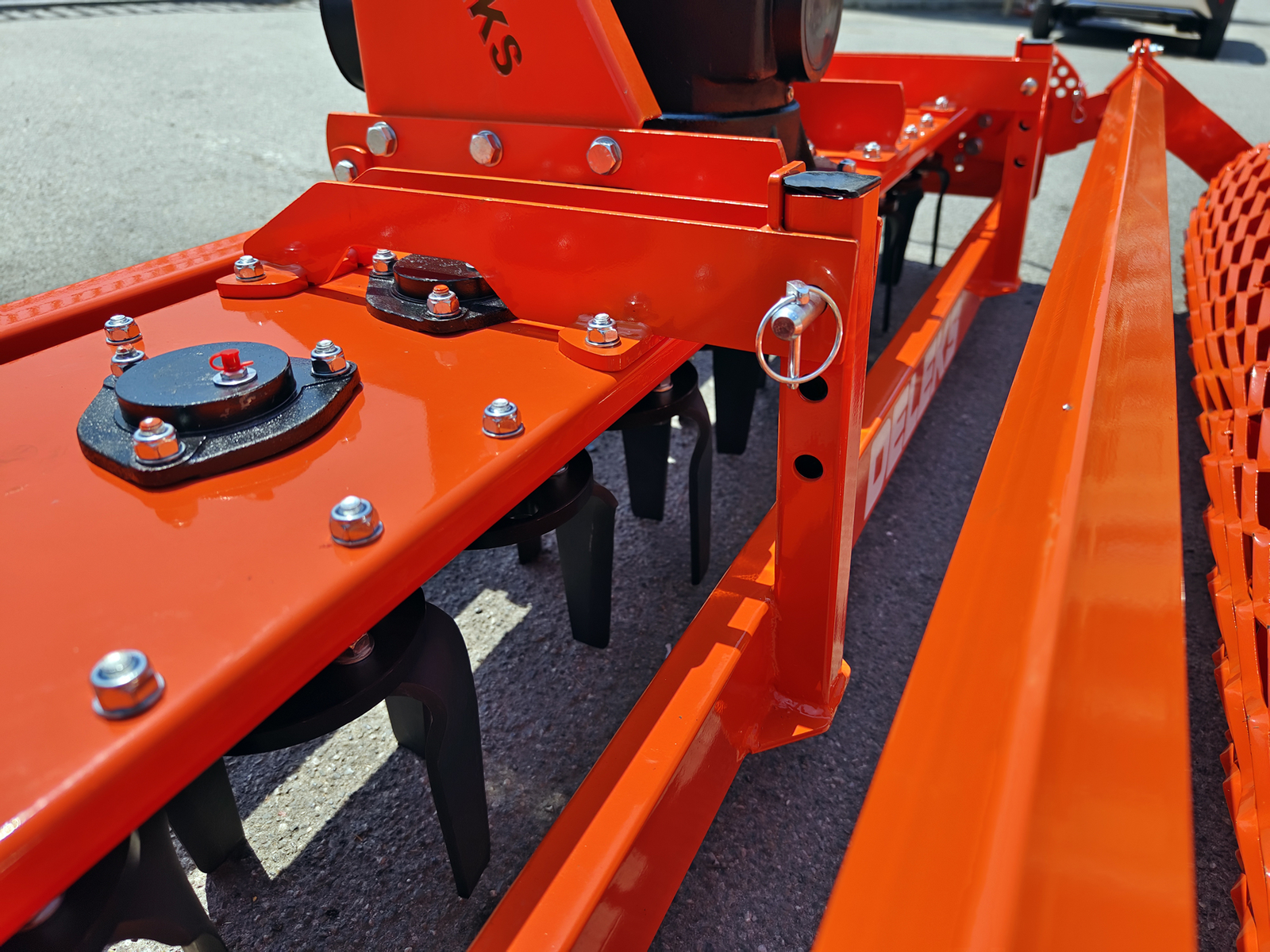DELEKS® Erpice rotante da 125cm di lavoro effettivi, per trattori frutteto bassa potenza, da 19 a 37 kW (25-50 HP), con rullo posteriore a rete di serie e riduttore di velocità per P.d.p. 540 giri/min.