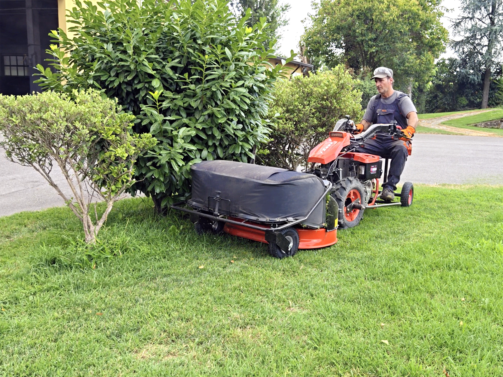 Il rasaerba RM100 può essere usato con o senza cesto raccolta. Senza cesto raccolta il piatto può funziona come scarico laterale. Coppia ruote frontali pivottanti di serie per una facile manovrabilità.