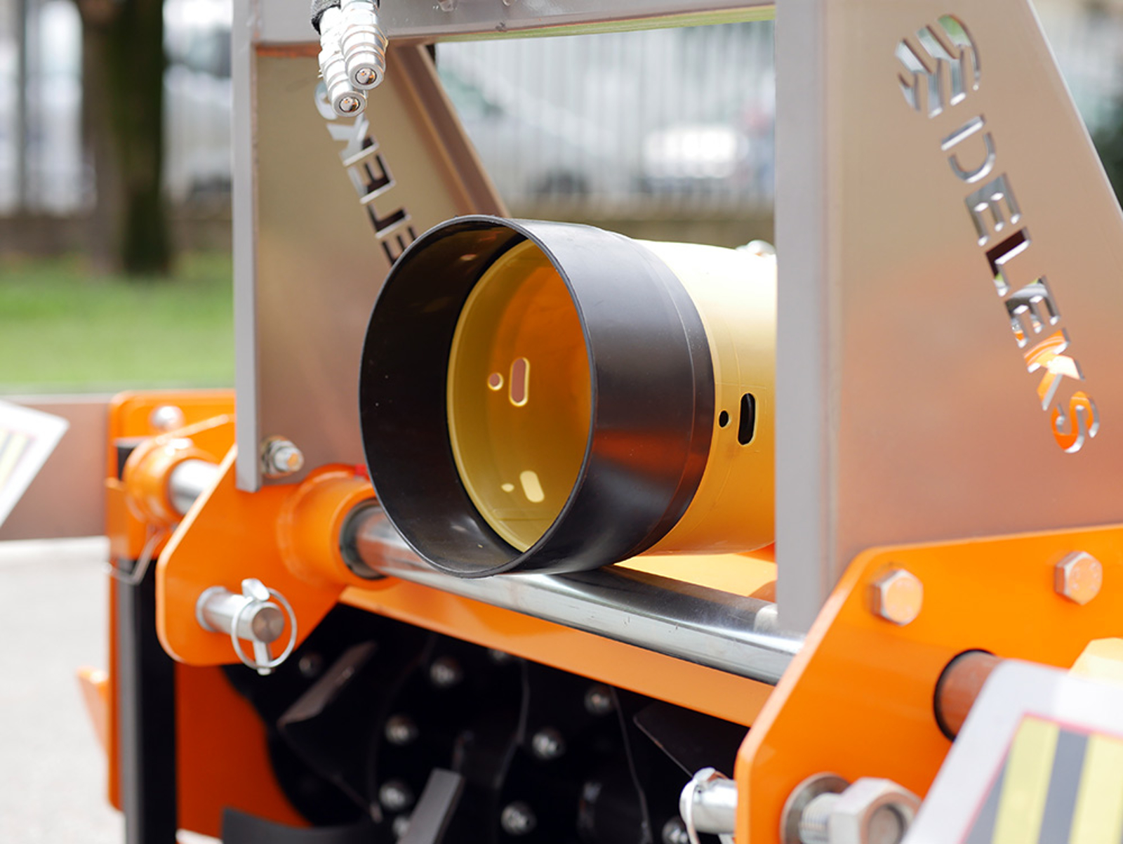 DELEKS® DFH-IDR-135 Zappatrice serie pesante, attacco a 3 punti con spostamento idraulico. Per la lavorazione del suolo nel vigneto, orto, serra e giardinaggio.