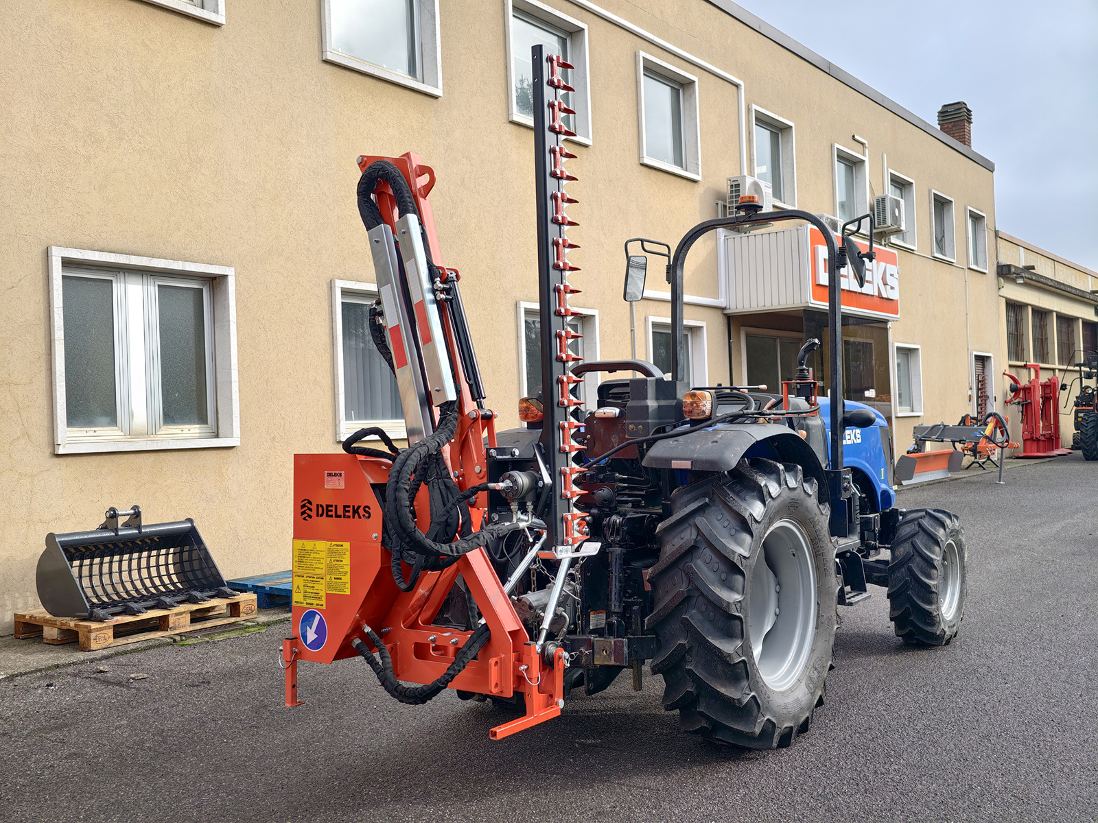 Braccio decespugliatore idraulico portato DELEKS® AIRONE, compatibile con trattori con sollevamento a 3 punti Cat. 1, predisposto per testate trincianti da 60–80–100 cm o barre tosasiepi da 130–160–180 cm. Joystick di comando e pompa PTO inclusa.