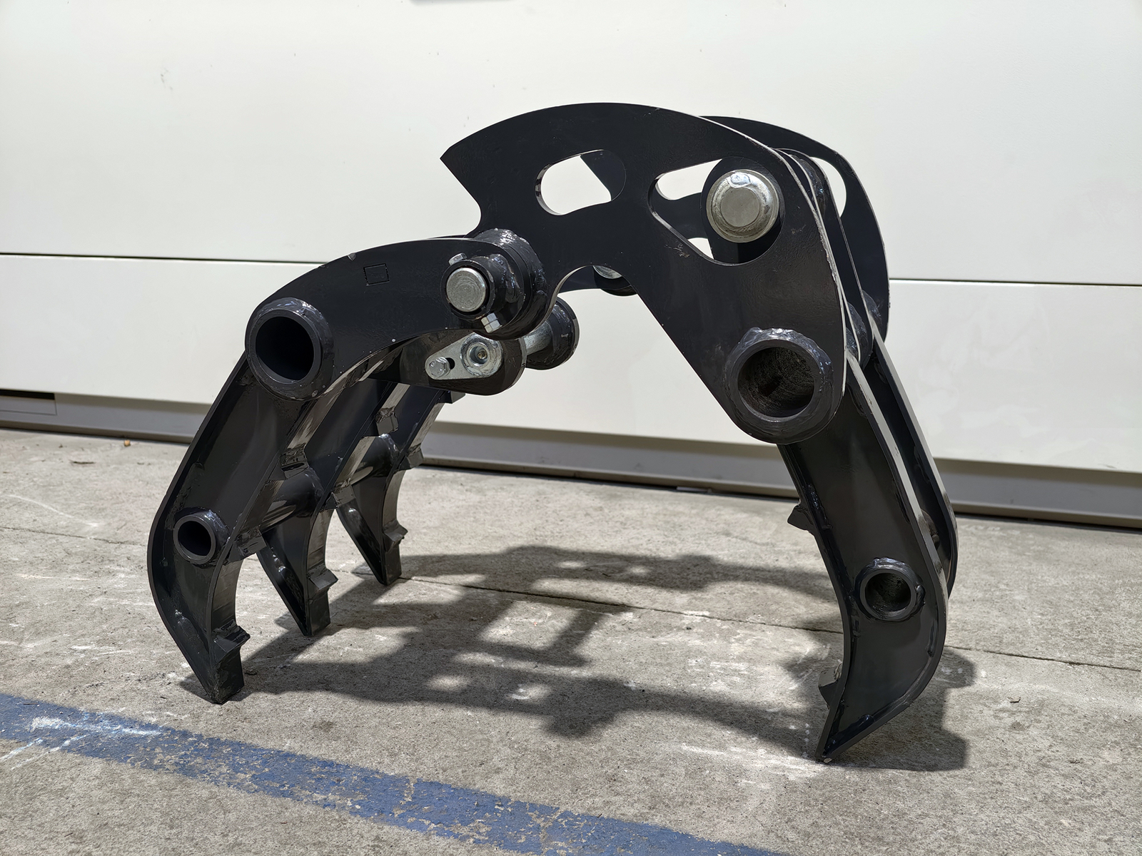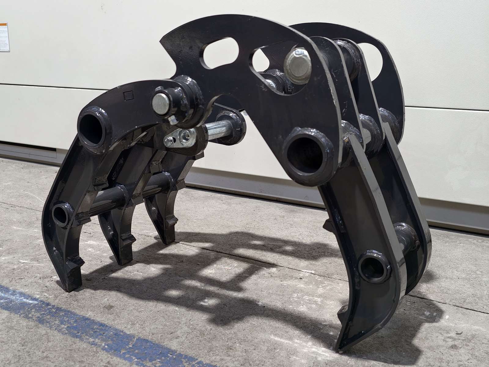 Pinza per miniescavatori S280, costruita in acciaio strutturale ad alta resistenza, con cinematismo a singolo attuatore e ganasce sagomate per la presa di materiali compatti. Il collegamento al braccio avviene tramite 2 perni Ø35 mm con ingrassatore oppure mediante attacco rapido meccanico S280. Progettata per garantire elevata rigidità torsionale e resistenza alle sollecitazioni derivanti dalla movimentazione di carichi irregolari.