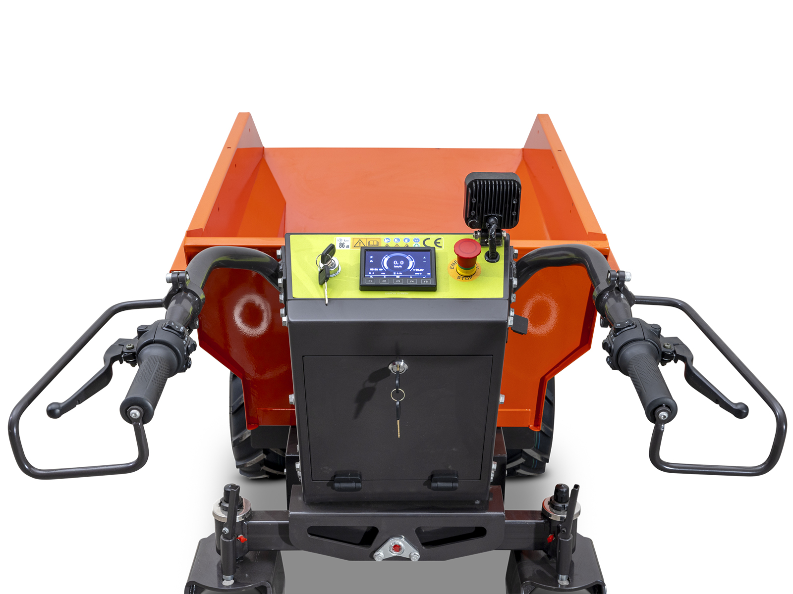 Motocarriola 100% elettrica, batteria al litio, con cassone dumper a ribaltamento idraulico