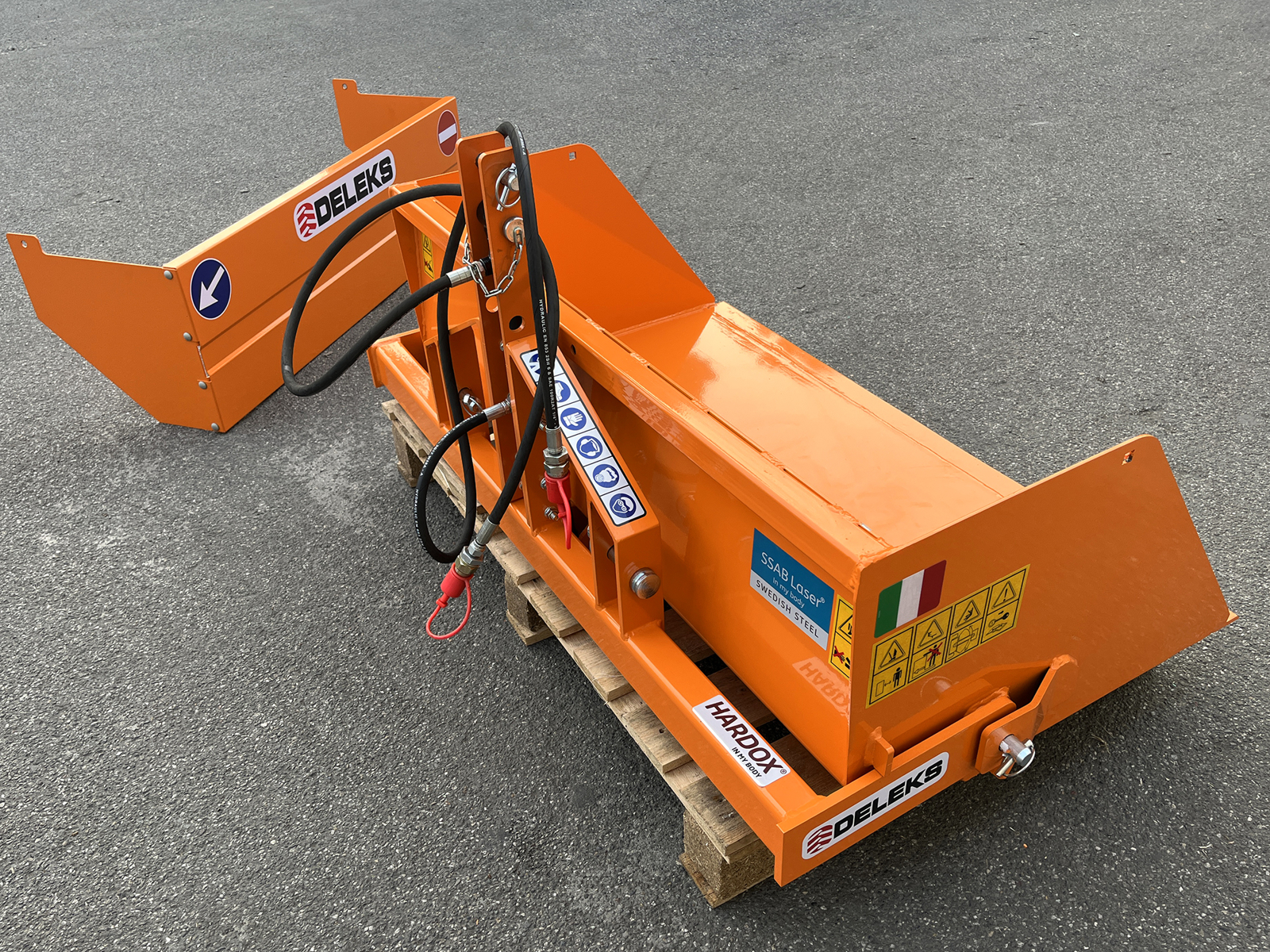 Pala a ribaltamento idraulico DELEKS® - Made in Italy - serie leggera, 120cm, realizzata in HARDOX e acciaio svedese SSAB per trattori tipo Kubota, Iseki, Carraro - paletta bilanciata idraulica per trattore.