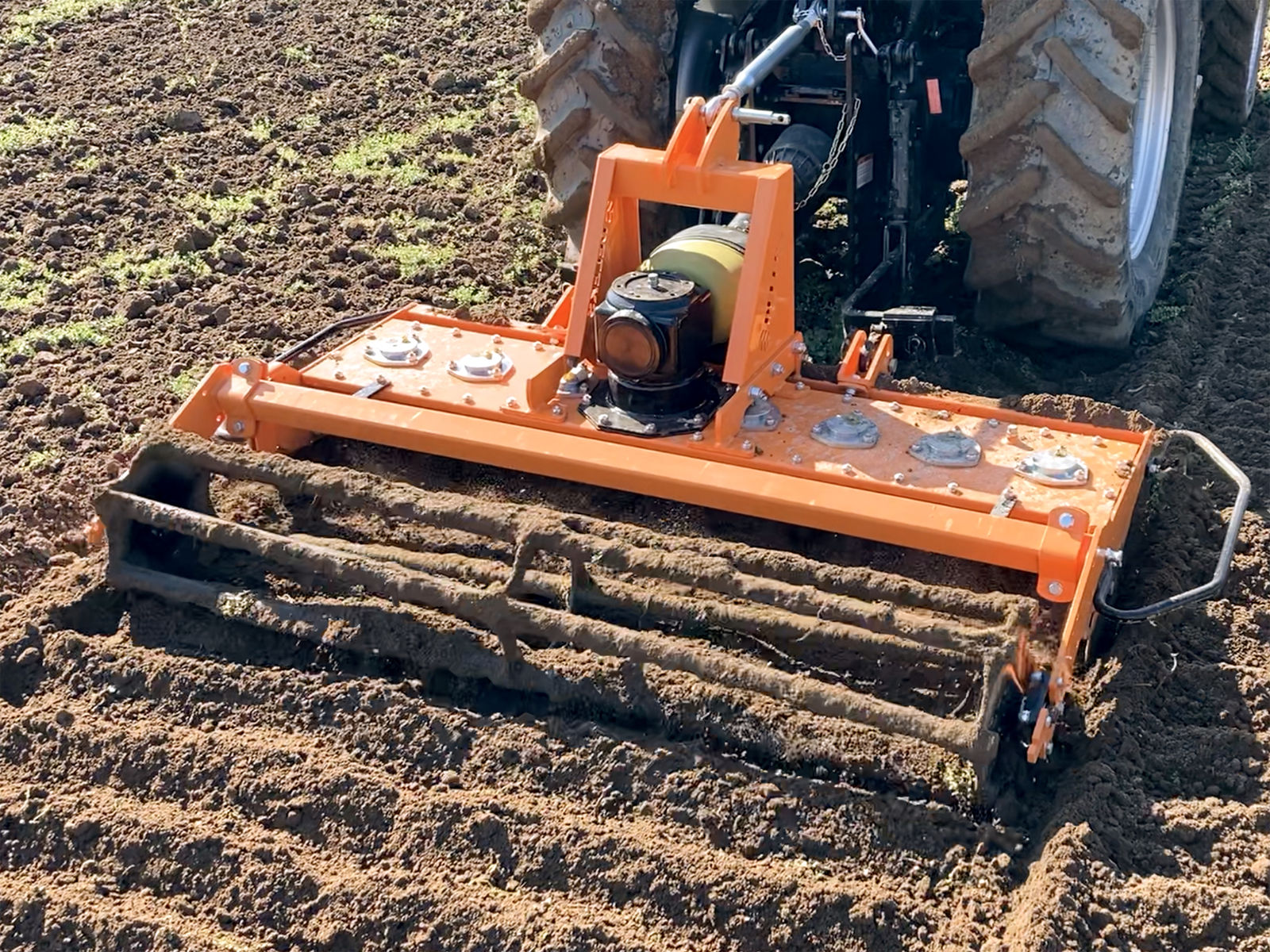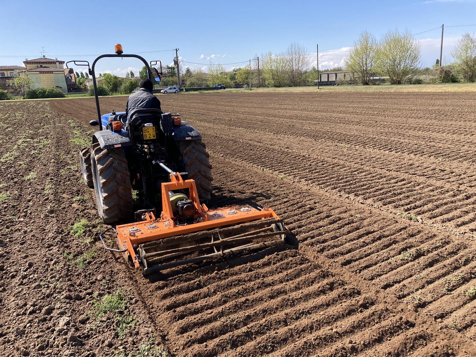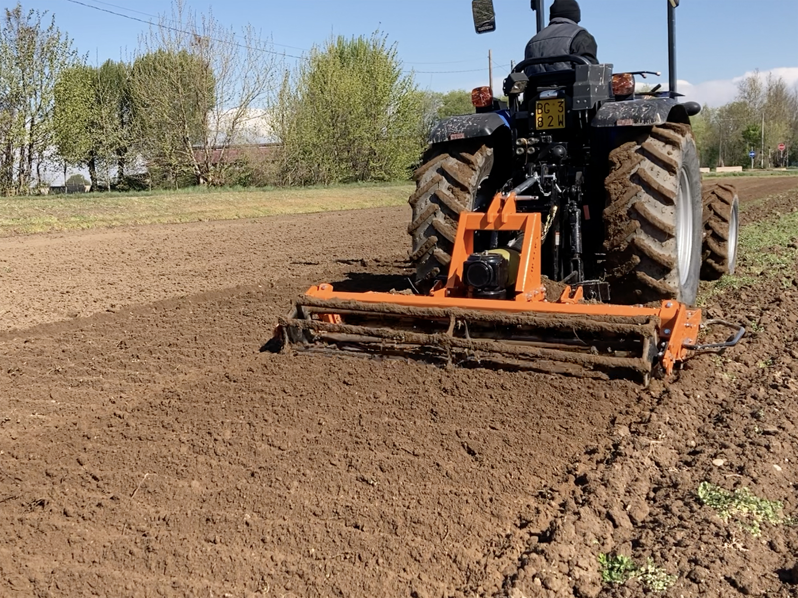 The KR model harrow has been designed for small farms and for tilling soil in specialized cultivations such as market gardening and viticulture. The special attention given to its overall dimensions and lightness makes it an ideal implement for low HP tractors. The special design of the blades allows the soil to be broken up with considerable economy in tractor power use.