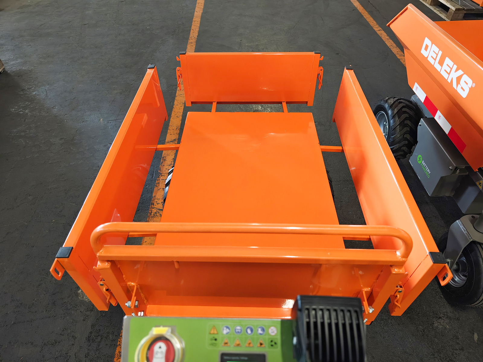 Motocarriola elettrificata DELEKS® XE-500Hf Minidumper con motore elettrico, ribaltamento idraulico, cassone per legna, carico 500kg.