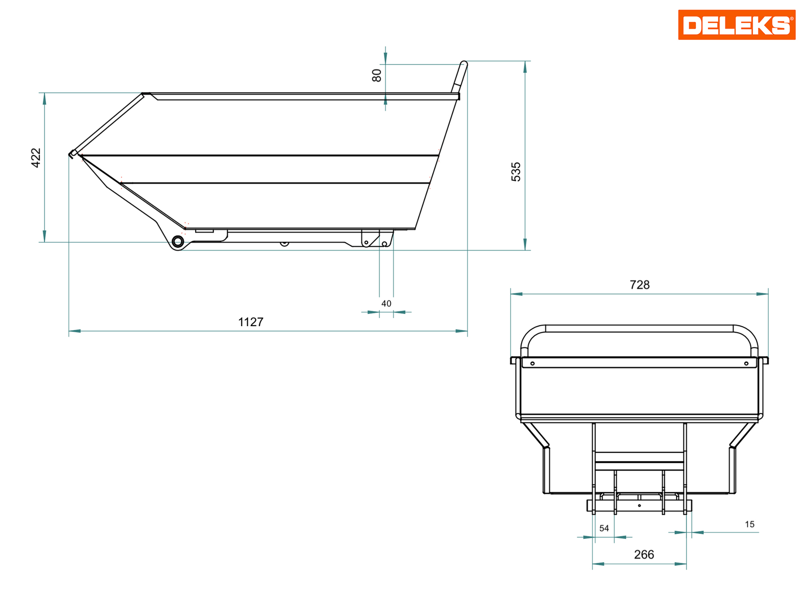 Un tipico utilizzo è abbinato a un Miniescavatore DELEKS®, per il trasporto di ghiaia, terra, fanghiglia, sabbia, materiale edile, ecc…
