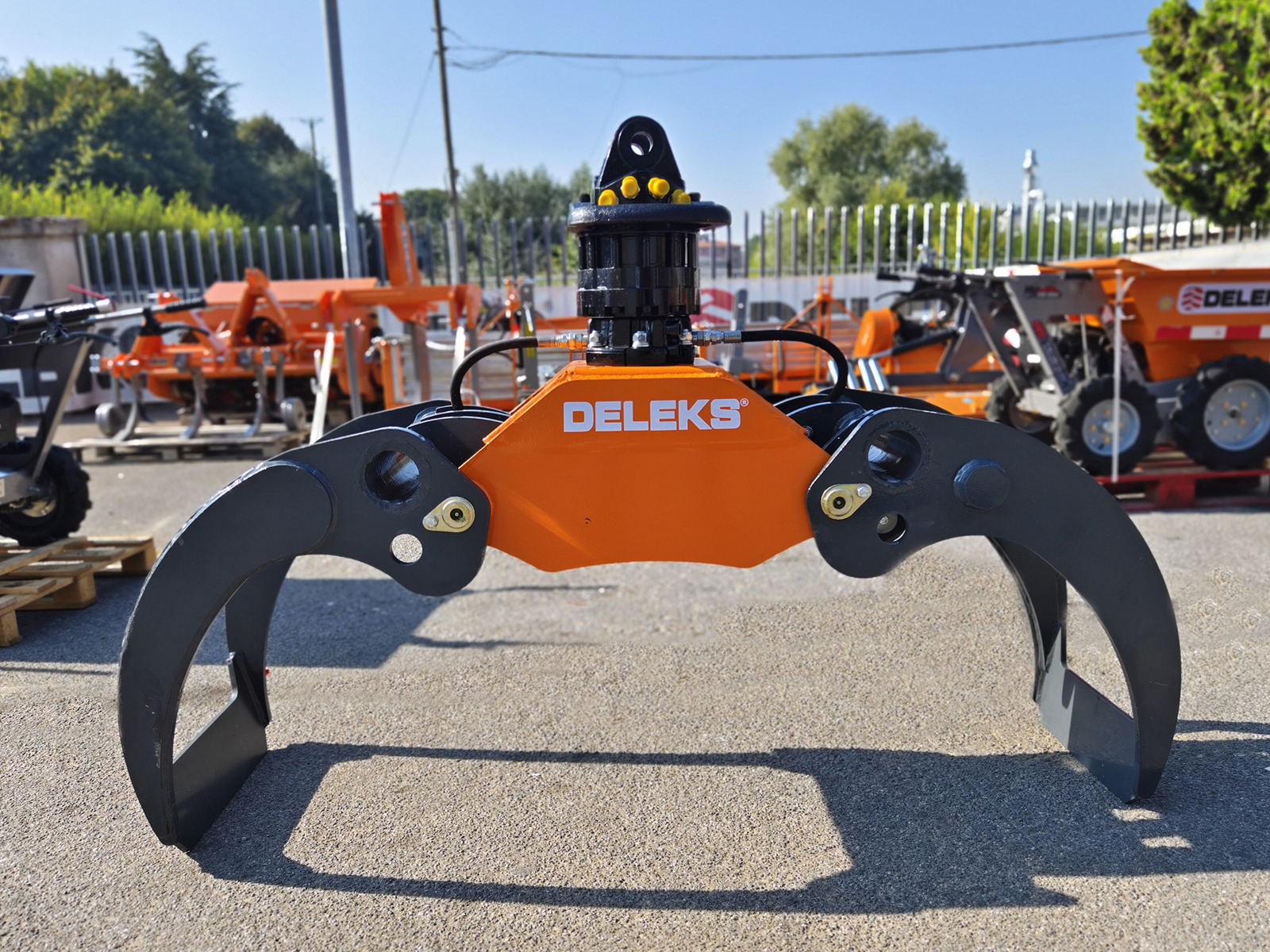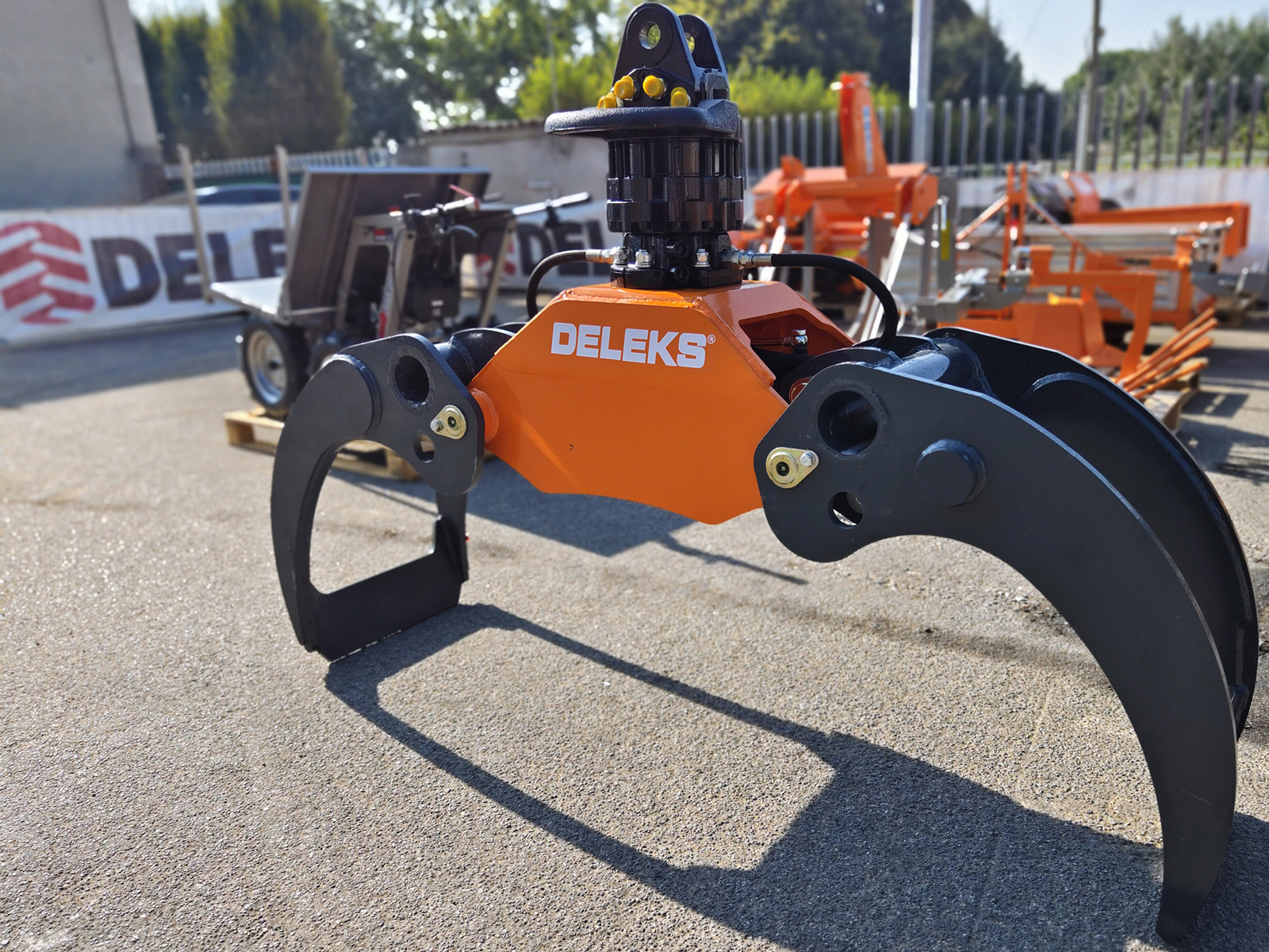 Pinza per tronchi di legna - portata 25 Qli e Rotore Lombarda Ingranaggi GR100F da 360° - DELEKS - pinza per tronchi con rotore flangiato, per gru, escavatori e caricaletame.