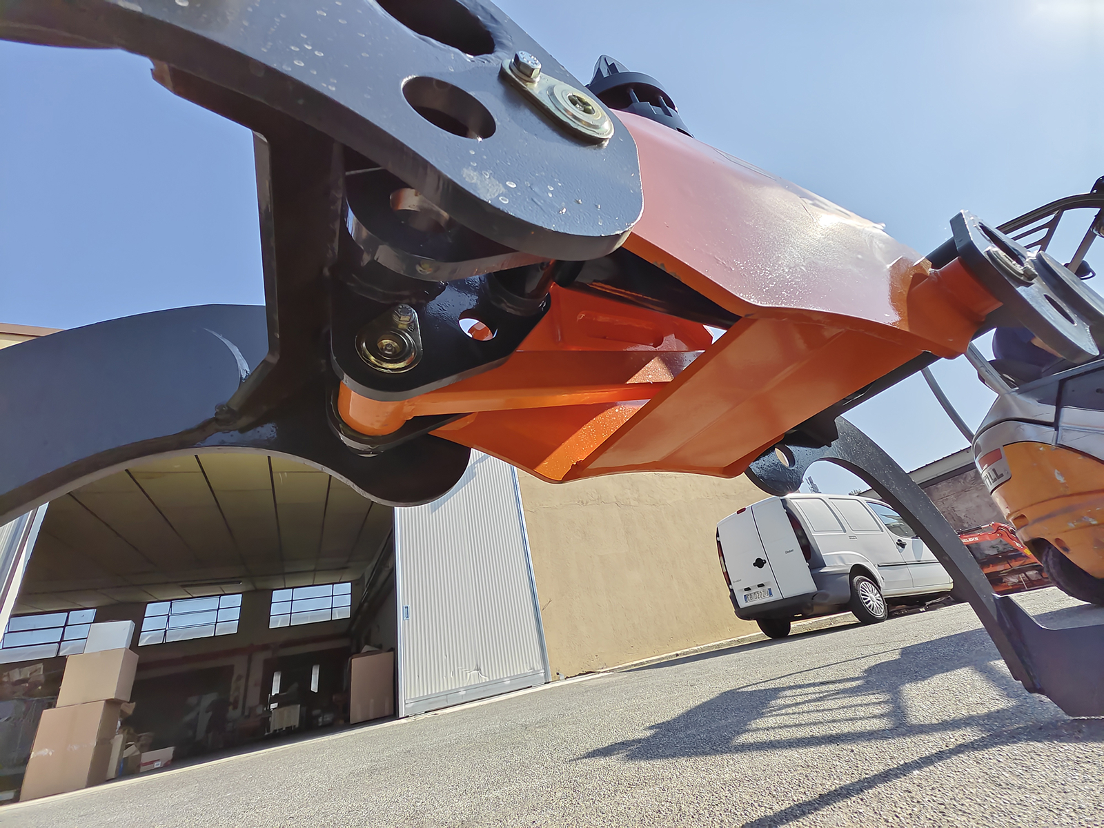 Il cinematismo realizzato a doppia chela sovrapponibile, permette alla pinza di abbracciare stringendo con forza la legna da movimentare, evitando così pericolose cadute in fase di carico e scarico.